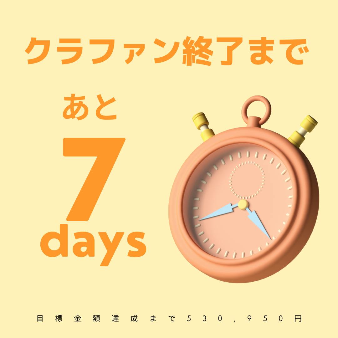 クラファン終了まであと、7日となりました。