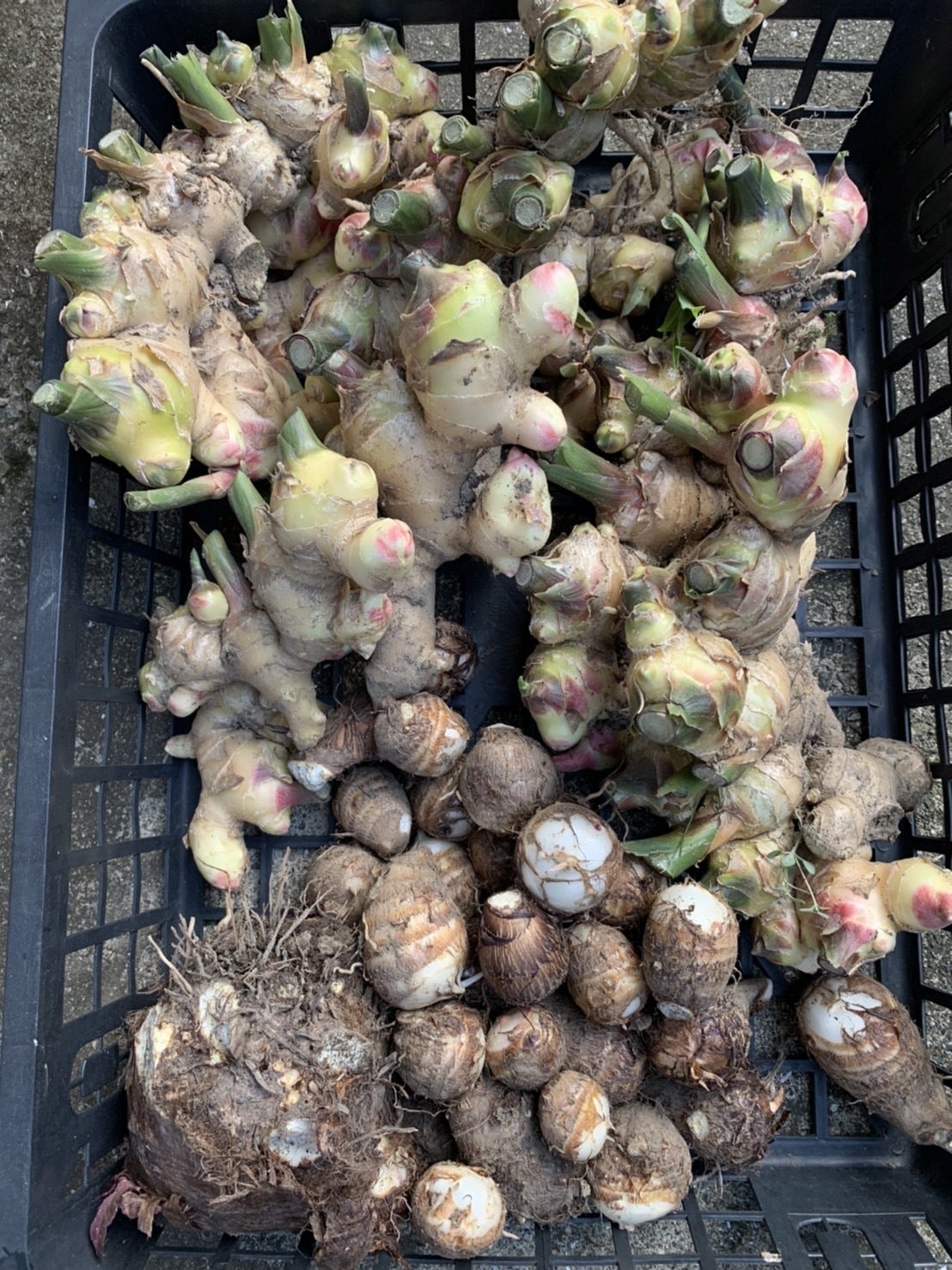 本日の投稿ですが、里芋を掘りにいくと生姜も出来ていました!来年もこのままいけば一定数できる予定ですので生姜もお送りする予定です!