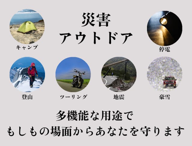 私自身、2018年9月に北海道の震度7の地震でブラックアウトを経験しました。電力がない不便な生活を5日過ごし改めて防災の大切さを実感しました。この地震が真冬に起こっていたかもしれないことを考えると自分を守るための備えとして高性能なサバイバルグッズを探し、この商品に出会いました。
