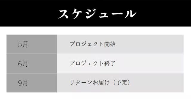 ※本文中に記載させていただいたスケジュールは、あくまでプロジェクト公開時点の予定です。クラウドファンディングの性質上、配送遅延のおそれがございます。