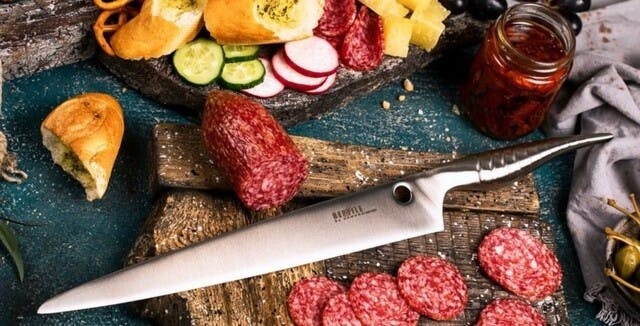お刺身などはもちろん、サラミやチーズなどの薄くカットしたい場合にこのスライサーは役に立ちます。長さがある分真っ直ぐ引くだけで切れるので、この快感をお試しください。