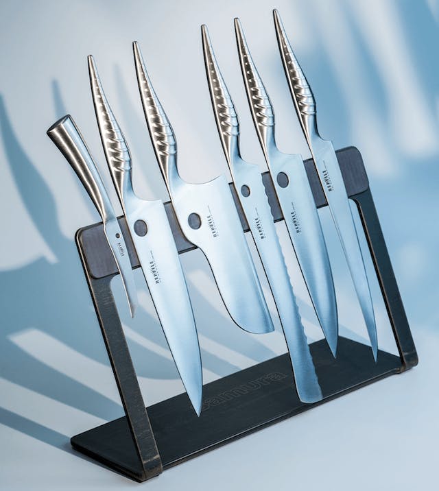 ヨーロッパの職人が日本をこよなく愛し、尊敬して作ったSamura リプタイル ナイフに目が留まりました。今まで見たことのないデザインに興味が湧き、ぜひ使ってみたいと思いとアレックス・ヤコブレフ氏にコンタクトを取りました。デザインも個性的で実際の使用感も軽くて、とても切れ味が良く、多彩な種類のナイフを使い分けて楽しみながら料理をしています。