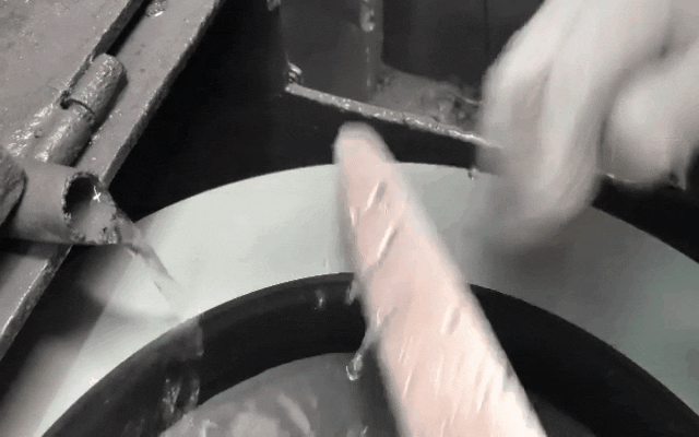 包丁一本一本に対してストーンウォッシュを導入しました。これにより、刃の表面が焦げ付きにくくなり、切れ味が向上します。さらに全ての包丁は職人の手作業による凸面研ぎが行われています。