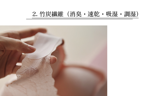 ➁蒸れが少なくなる!竹炭繊維(消臭・速乾・吸湿・調湿)