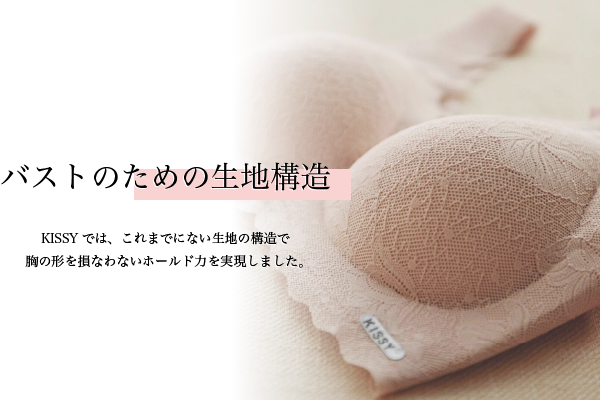 そこでKISSYでは、これまでにない生地の構造で胸の形を損なわないホールド力を実現しました。