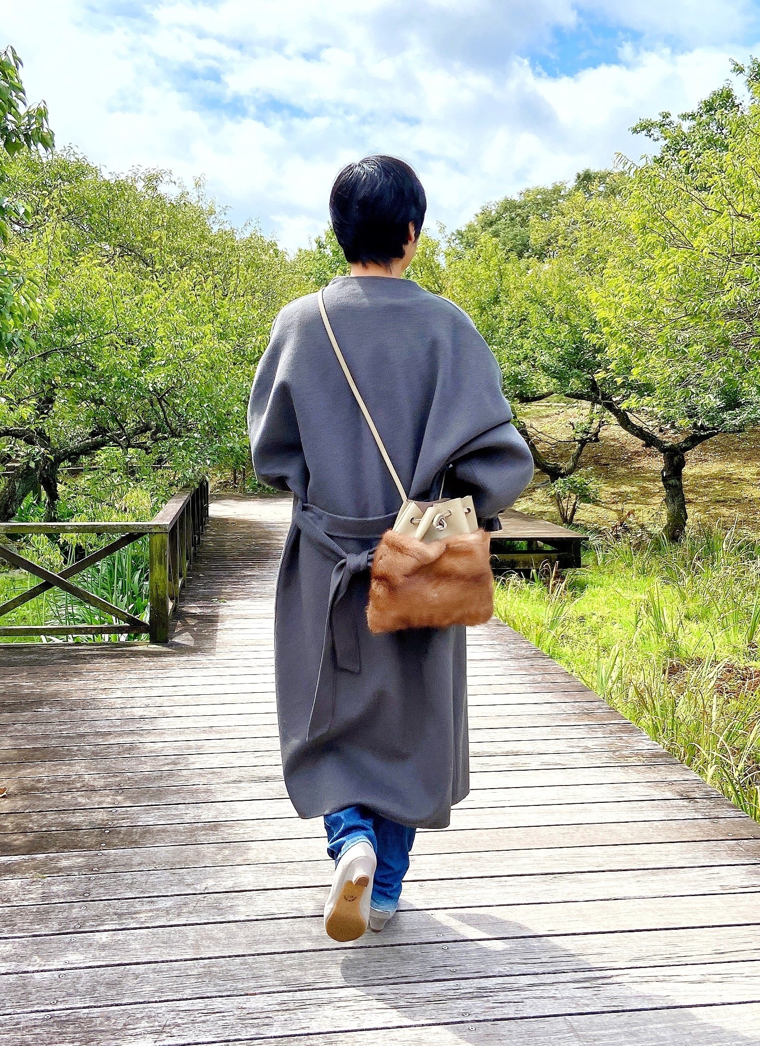 お散歩からちょっとしたお出かけまで。くしゅっとなったクロワッサン型がかわいいです。