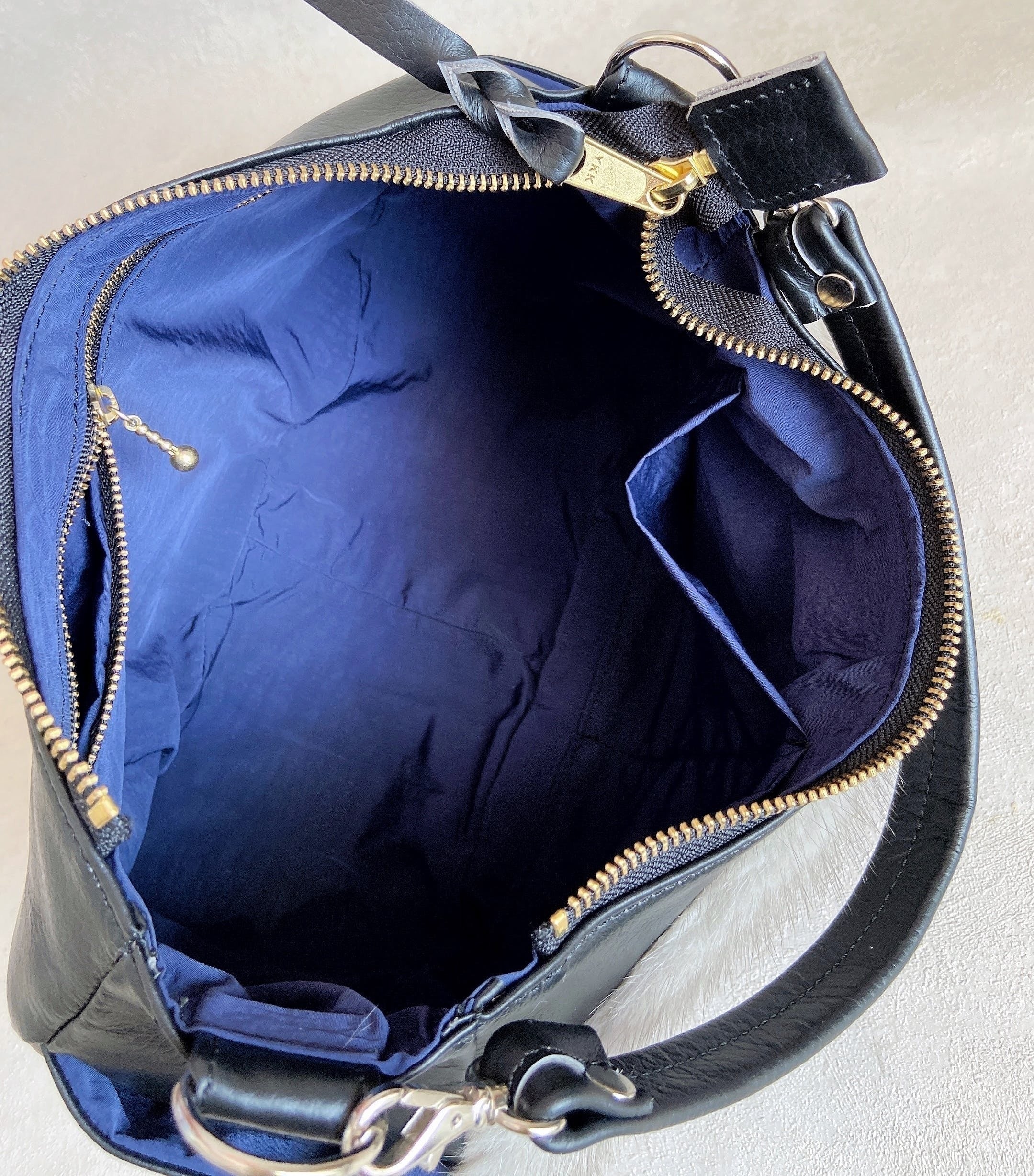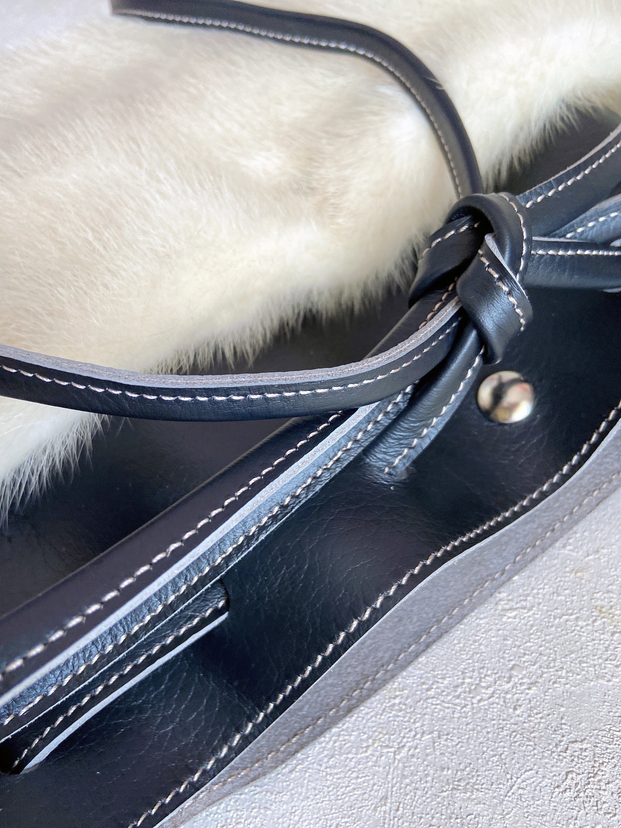 本体はレザーの質感が楽しめるよう裏地なしのそのままで。