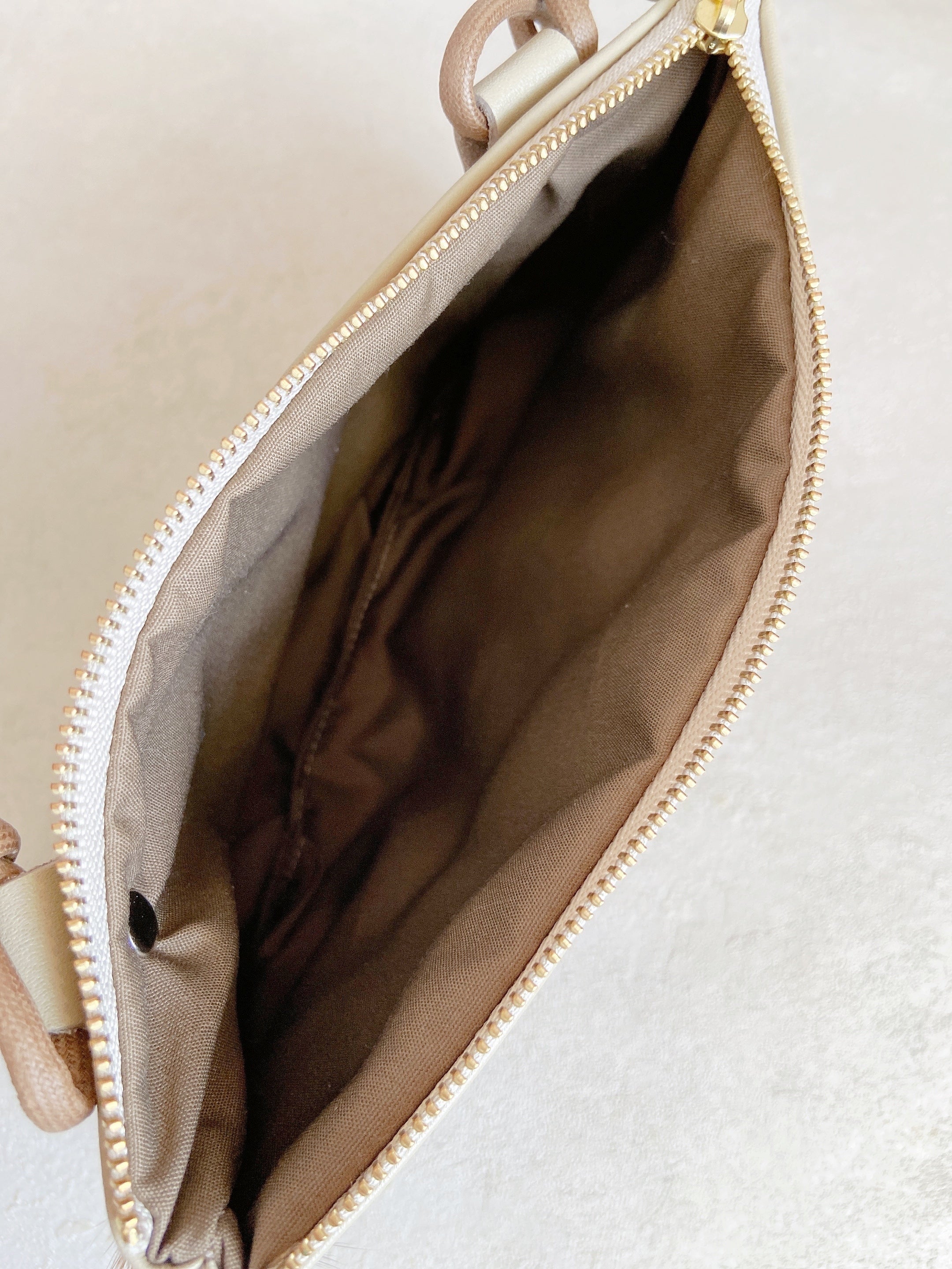 紐を外せばポーチやクラッチ、バッグinバッグになります。