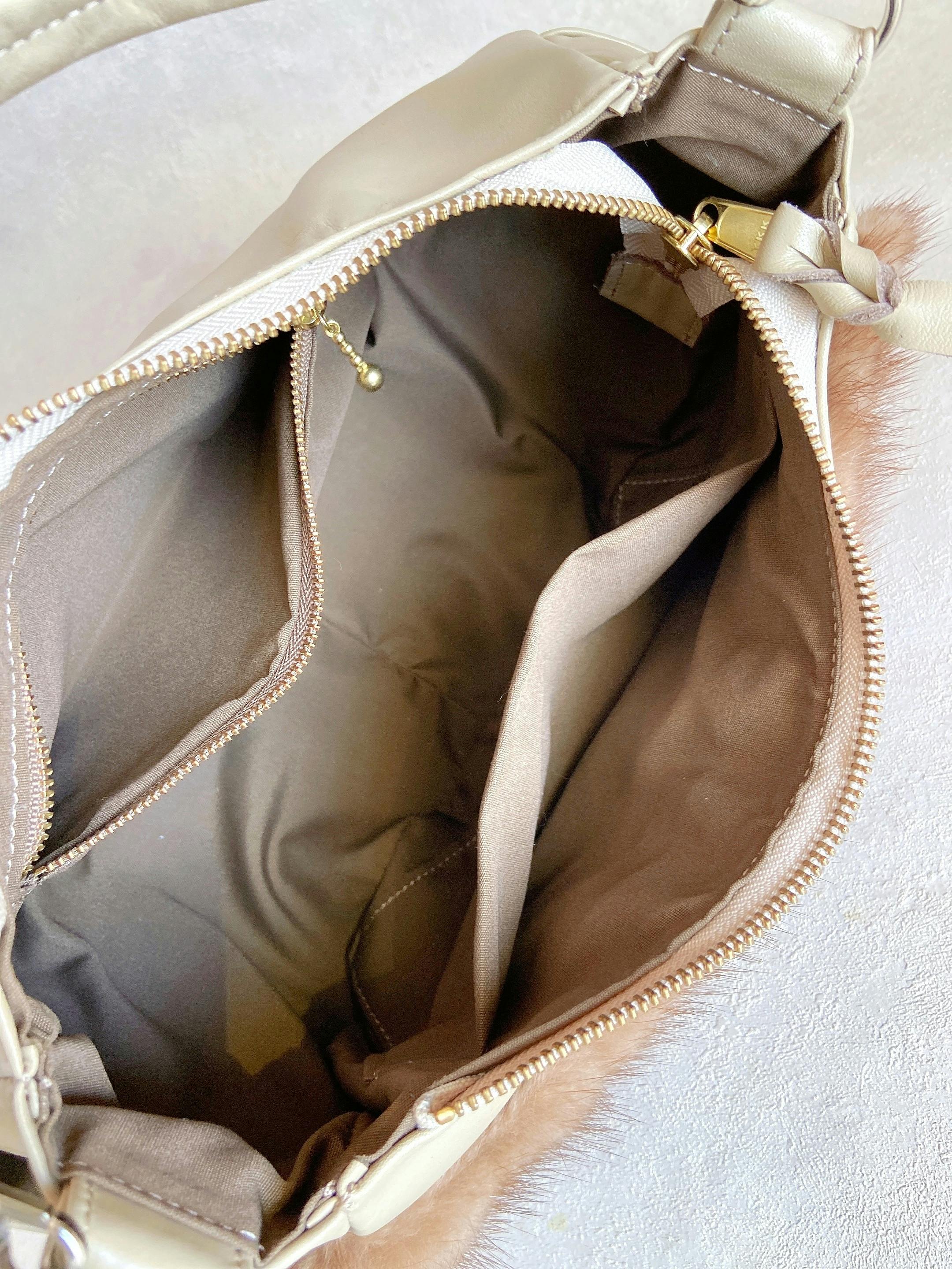手前のミンクファーはポケットになっており、スマホなど入れられます。