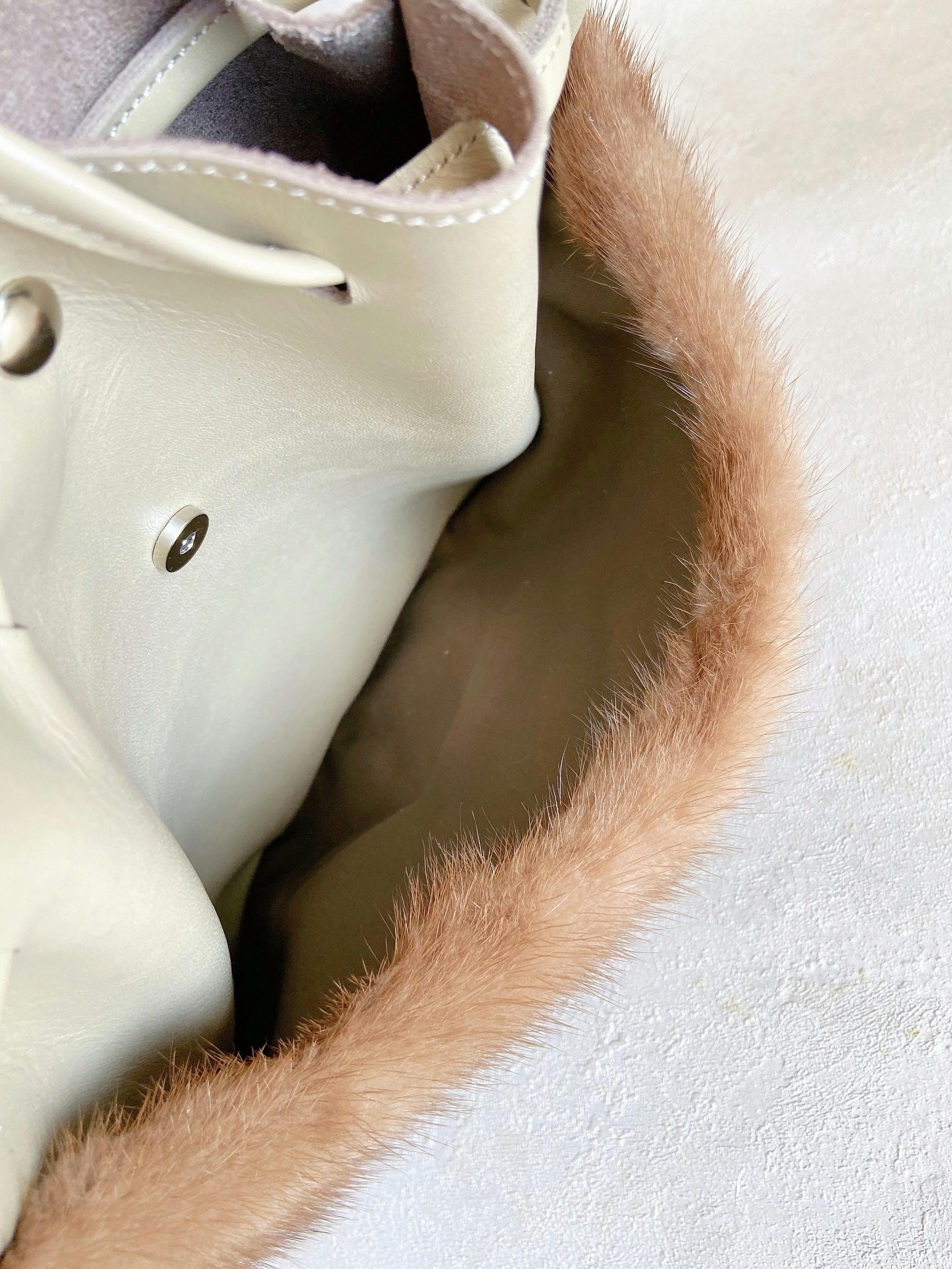 表はもこもこパステルミンクファーをレザーに乗せました。