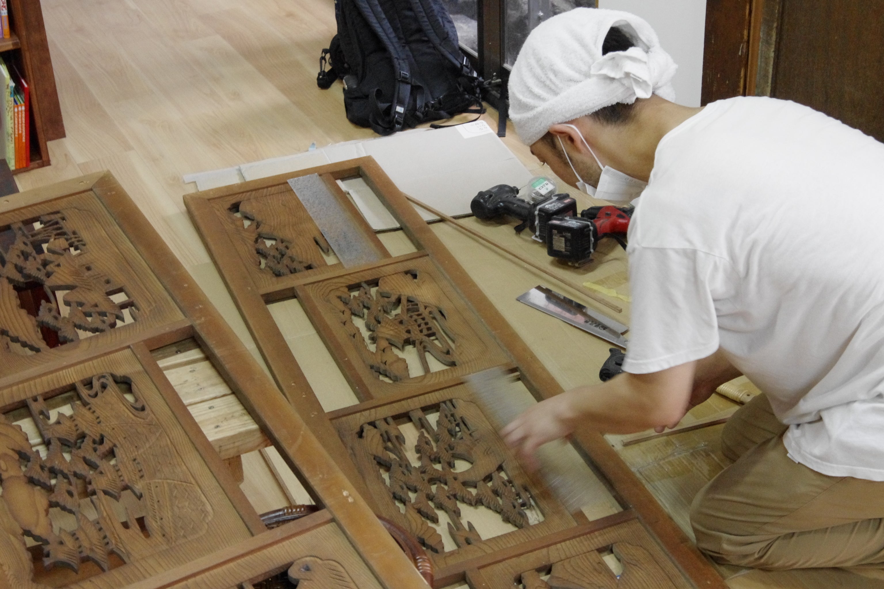 「創業当時は欄間があった」と知り、近江八景の欄間を取り入れた