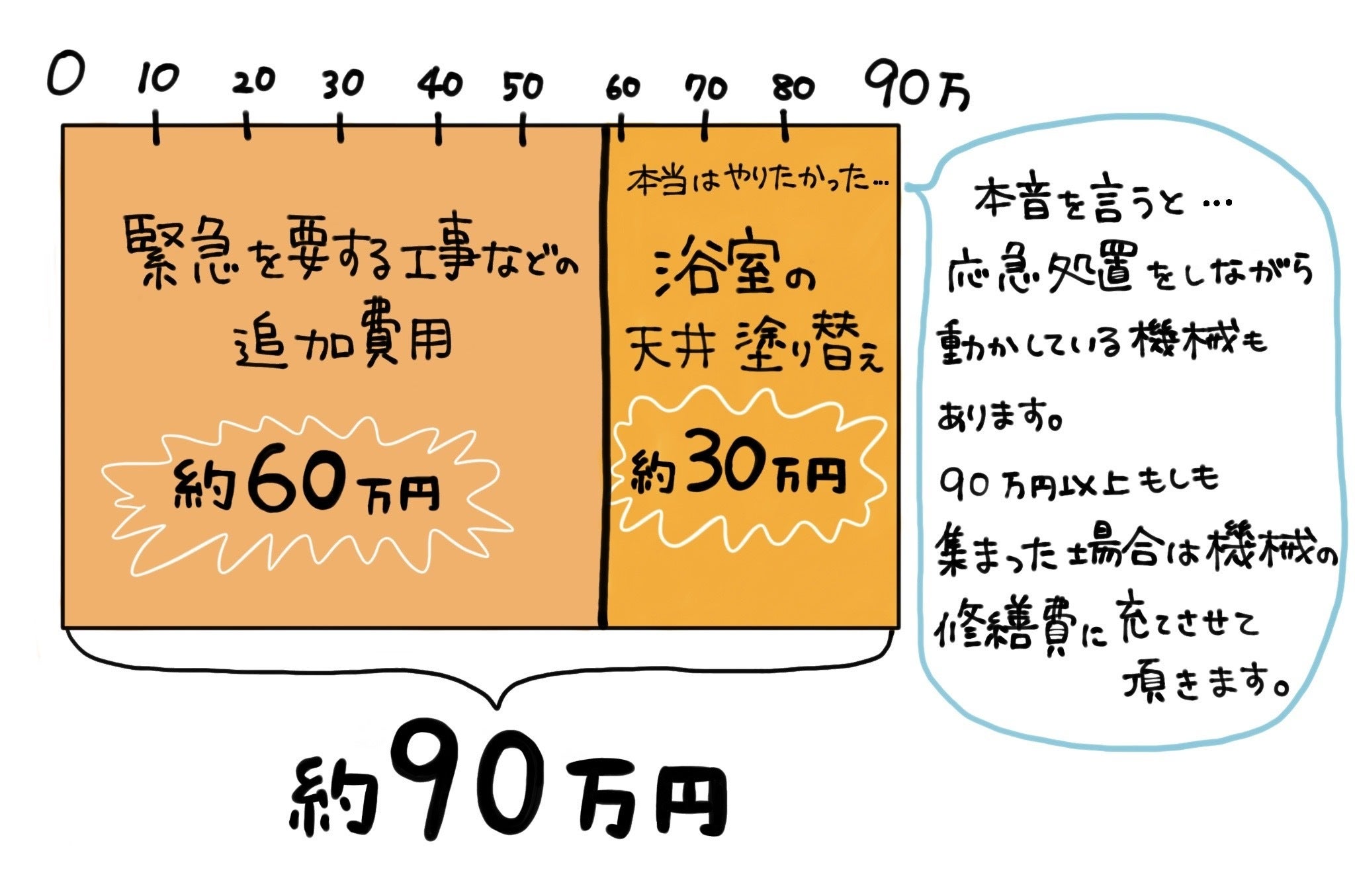 最初にお知らせしました通り、90万円を超過したぶんは「設備修繕費」に充てさせて頂きます。