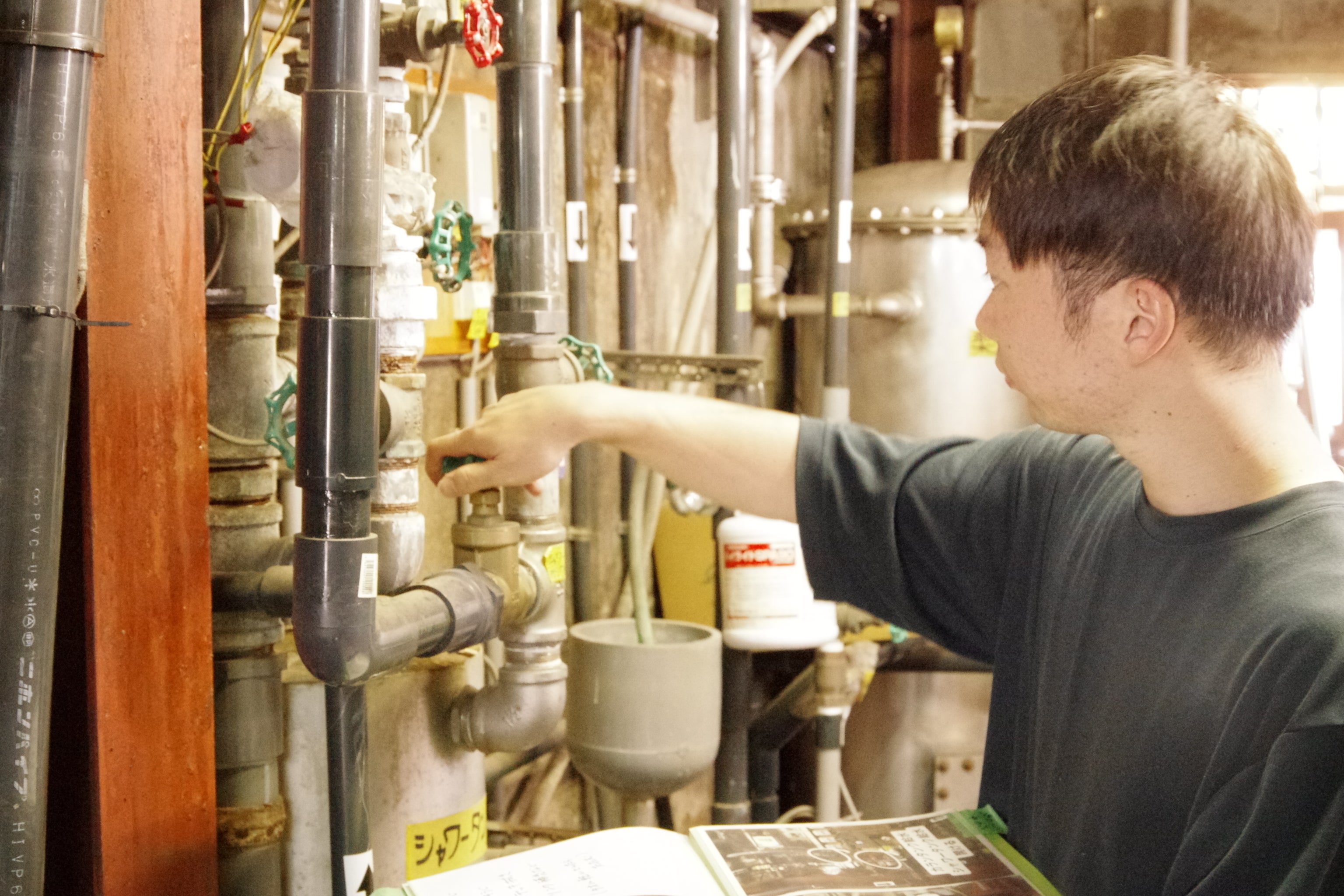 「日本から銭湯を消さない」をモットーに湯を沸かし、銭湯経営を目指すスタッフたちで日々、技術やノウハウを積み重ねています。