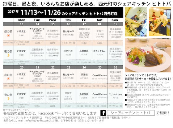★★★シェアキッチン ヒトトバでは、毎曜日店長を大・大・大募集しております!★★★