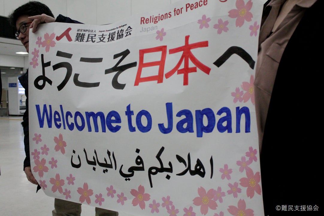 2017年3月、プログラム第1期生6人をスタッフが空港で出迎え。トルコから呼び寄せて到着した初めてのシリア人。日本語、英語、アラビア語の3カ国語で「日本へようこそ」