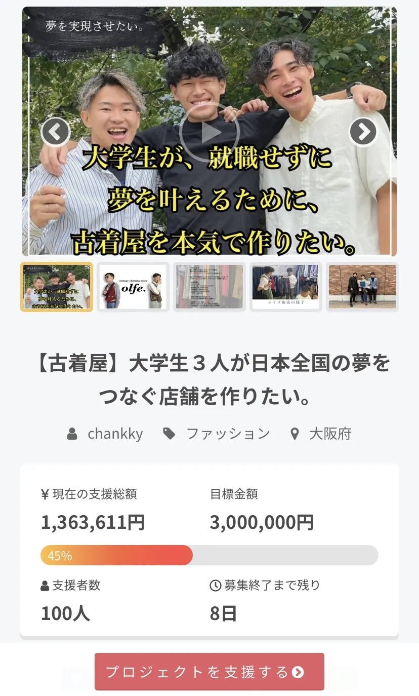 今日、支援者数が100名様を突破しました!