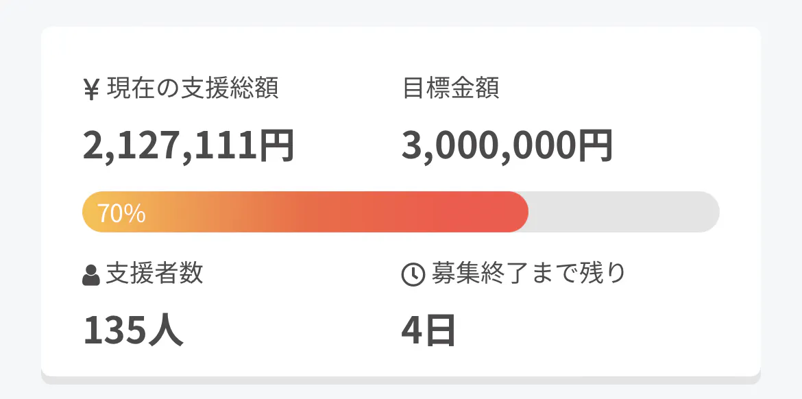 たくさんのご支援をいただき、本当にありがとうございます。