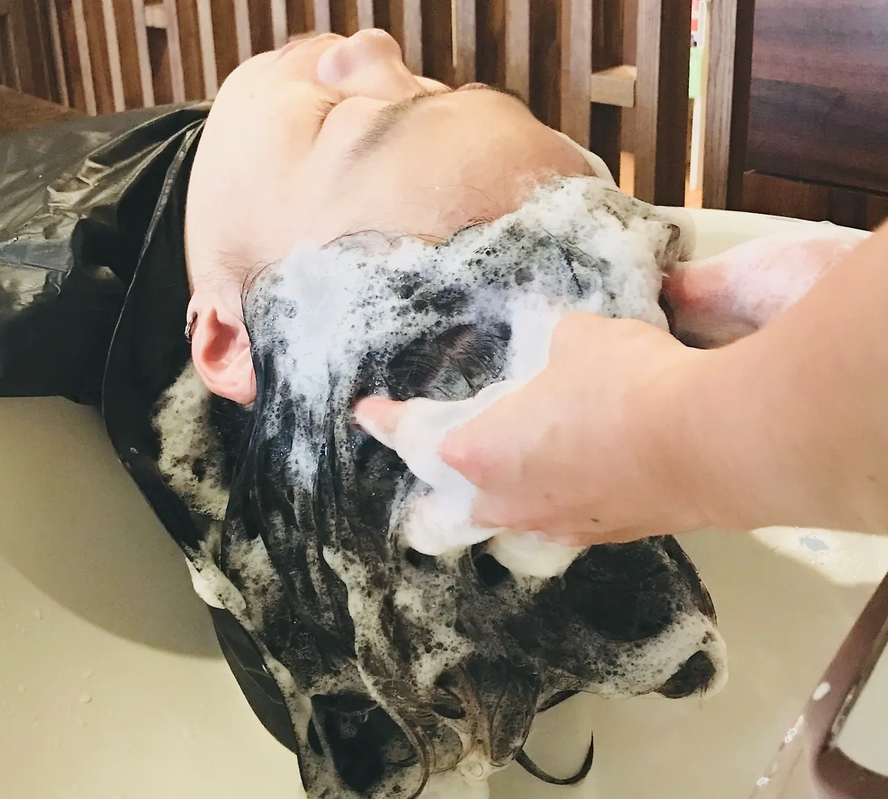 泡がもこもこの炭酸シャンプーを使ったヘッドスパです。
