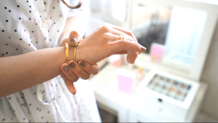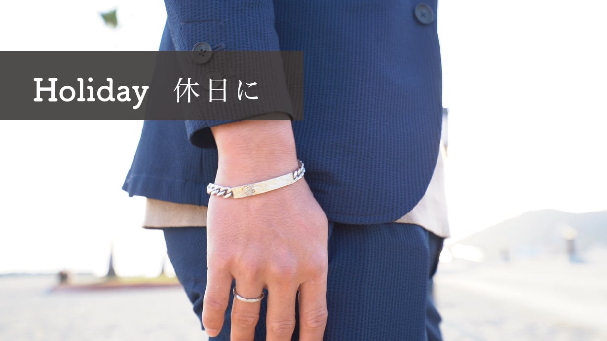 仕事帰りのデートでは、待ち合わせ場所へ向かう道でブレスレットをつけるだけで準備は完了です。