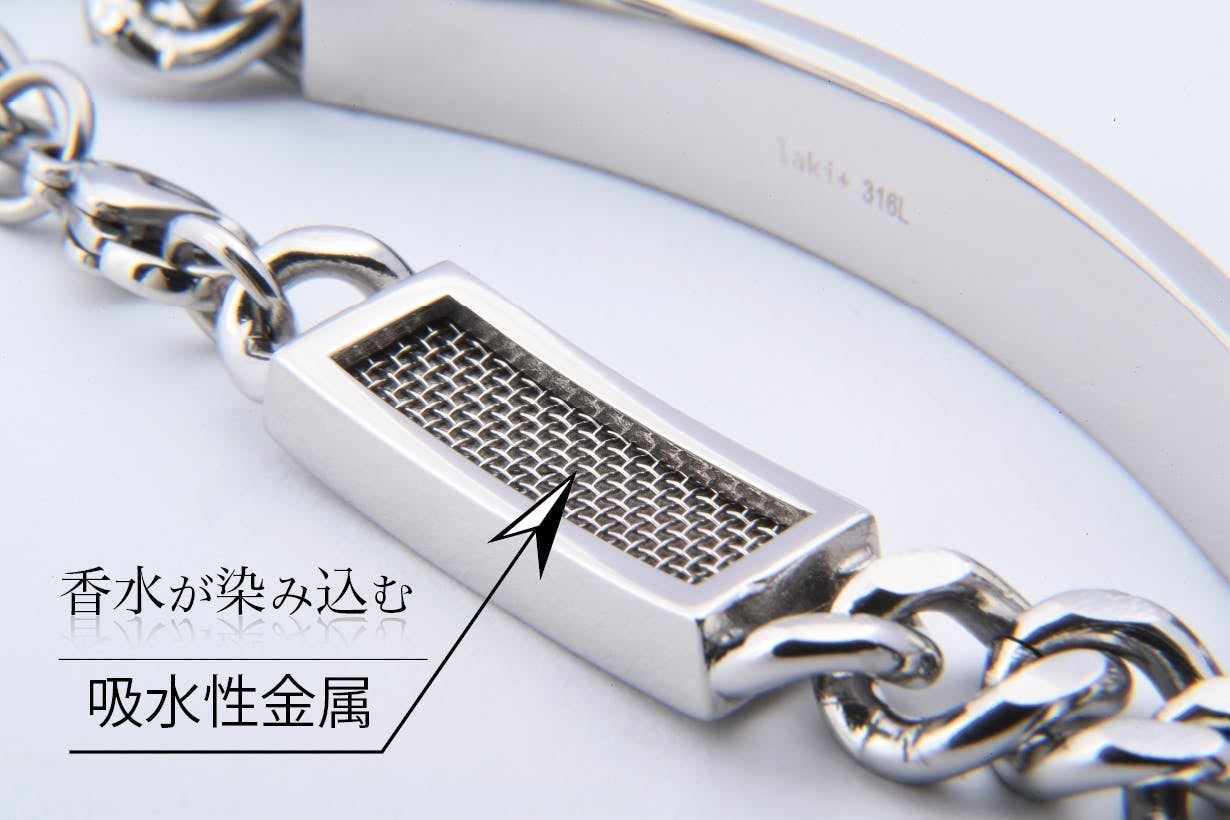 そんな思いをのせたブレスレットに、吸水性金属という特殊な金属を+「プラス」させ、フレグランスラインとしてデビューしました。