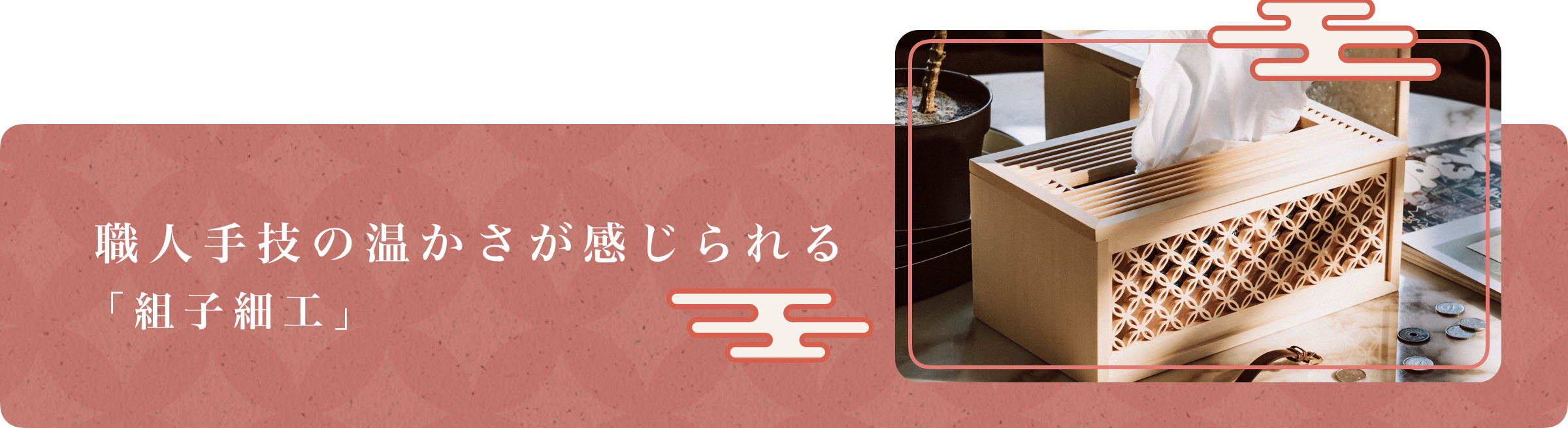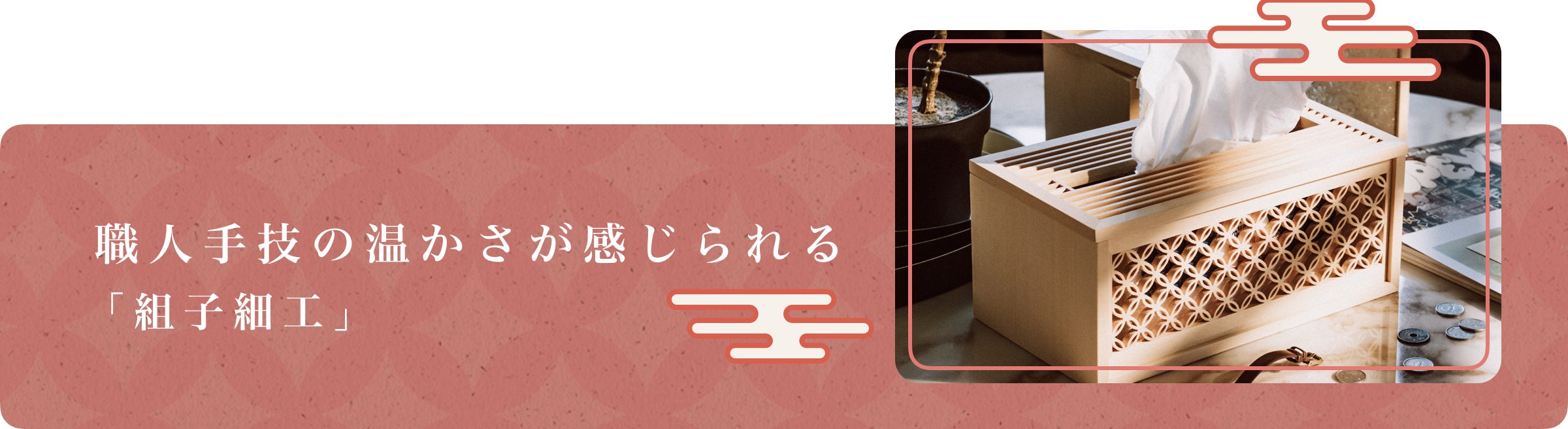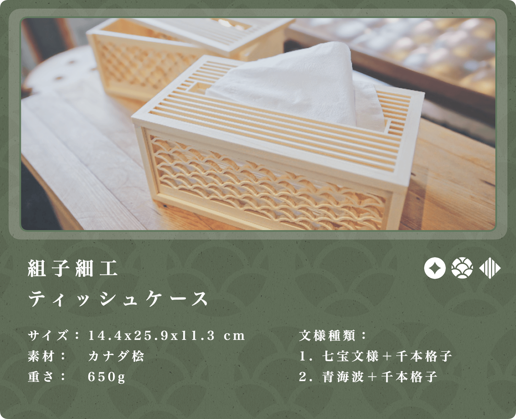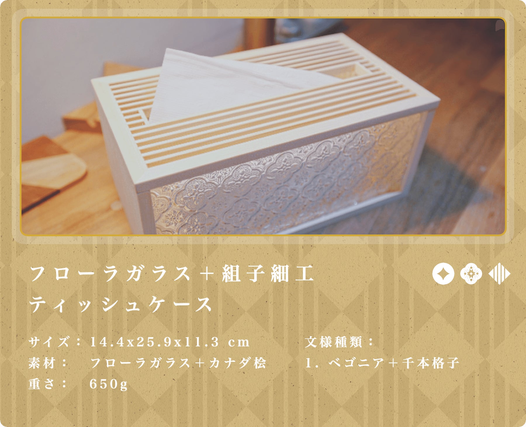 ②「組子細工」が施されたティッシュケース: