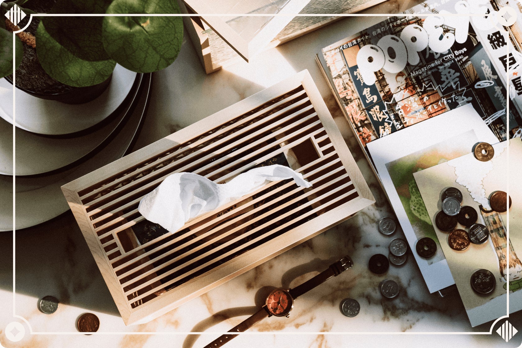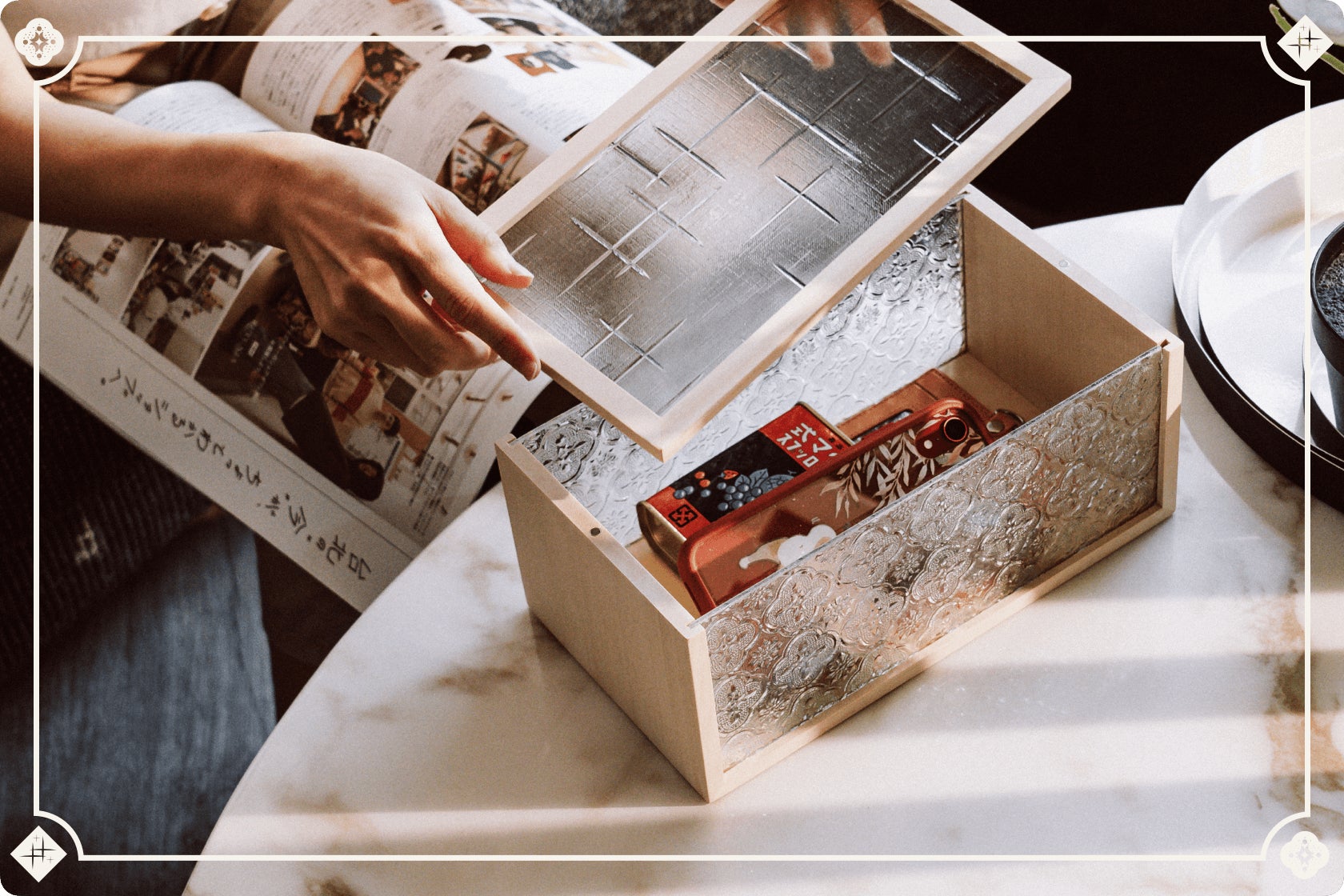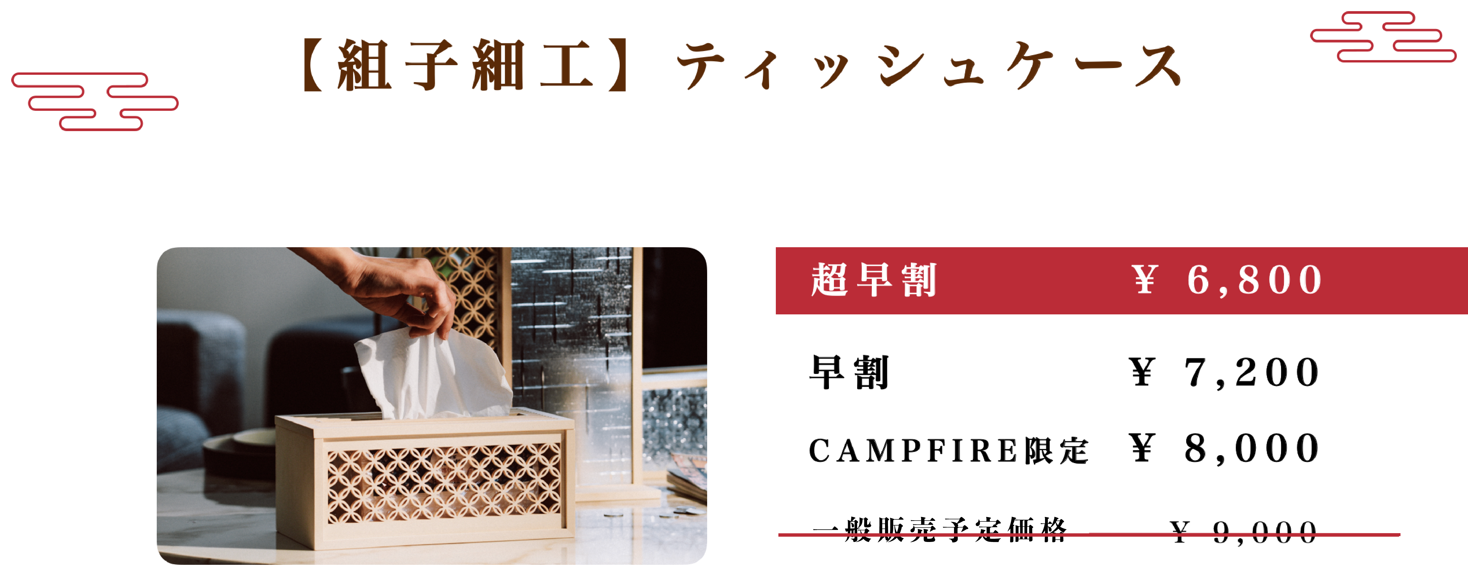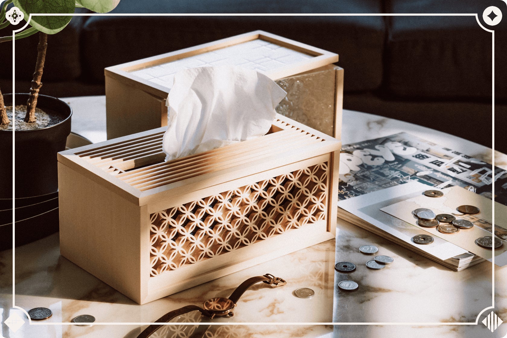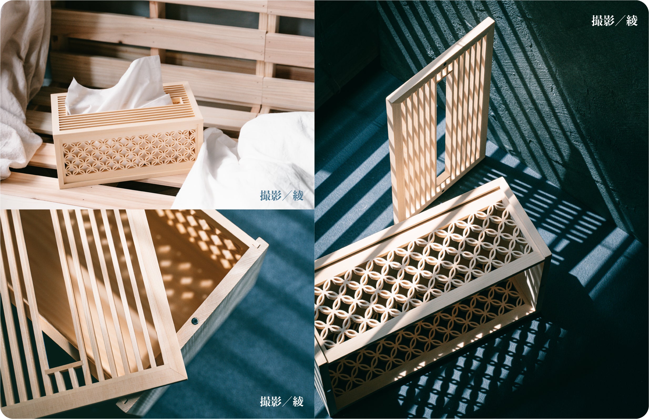 ②「組子細工」が施されたティッシュケース:
