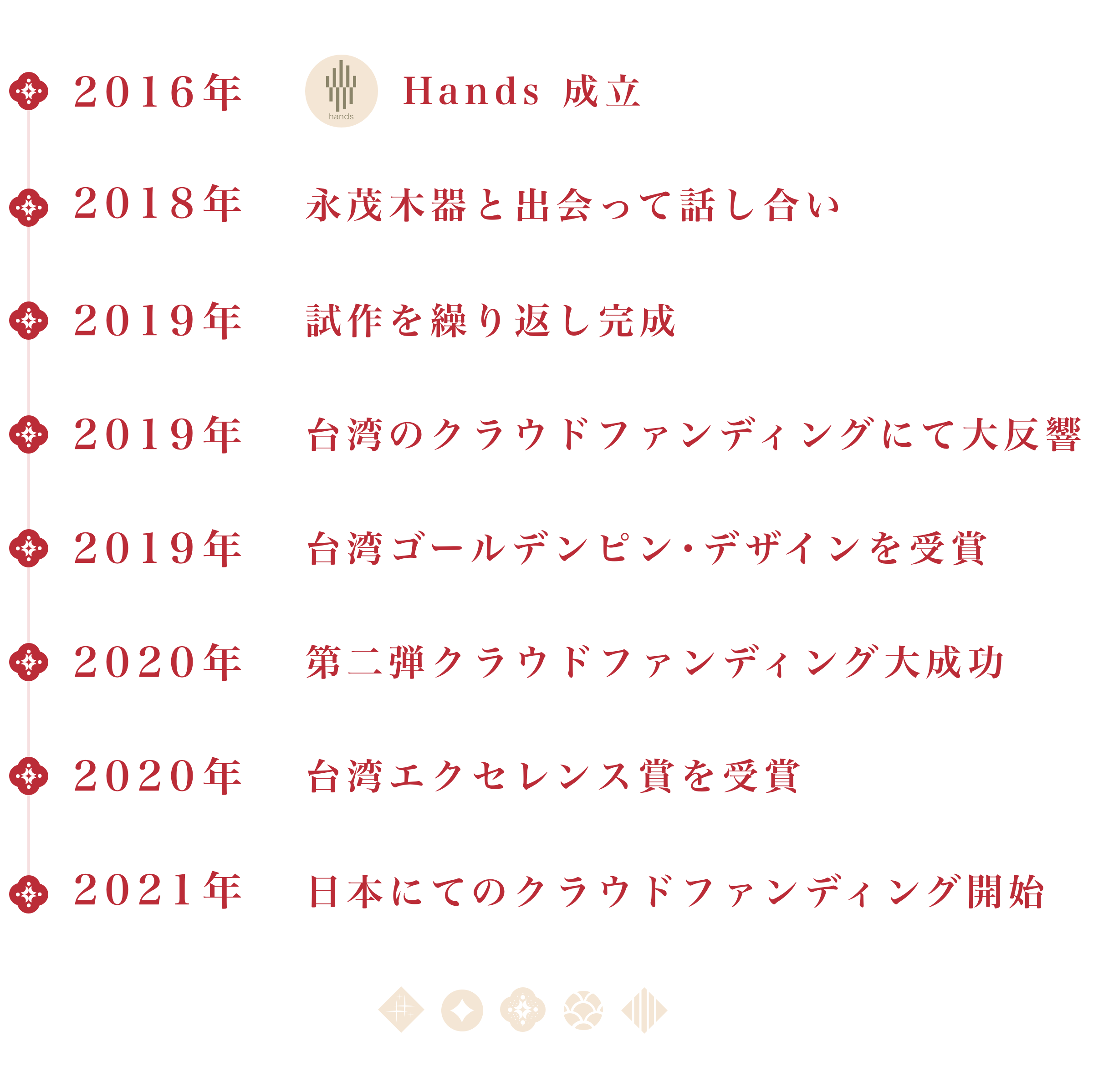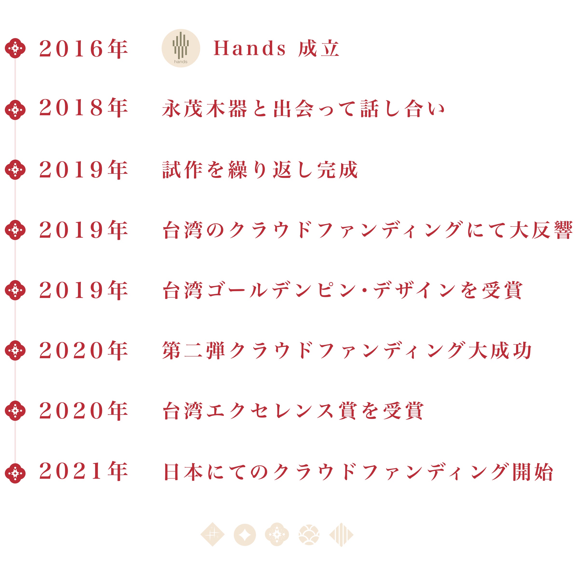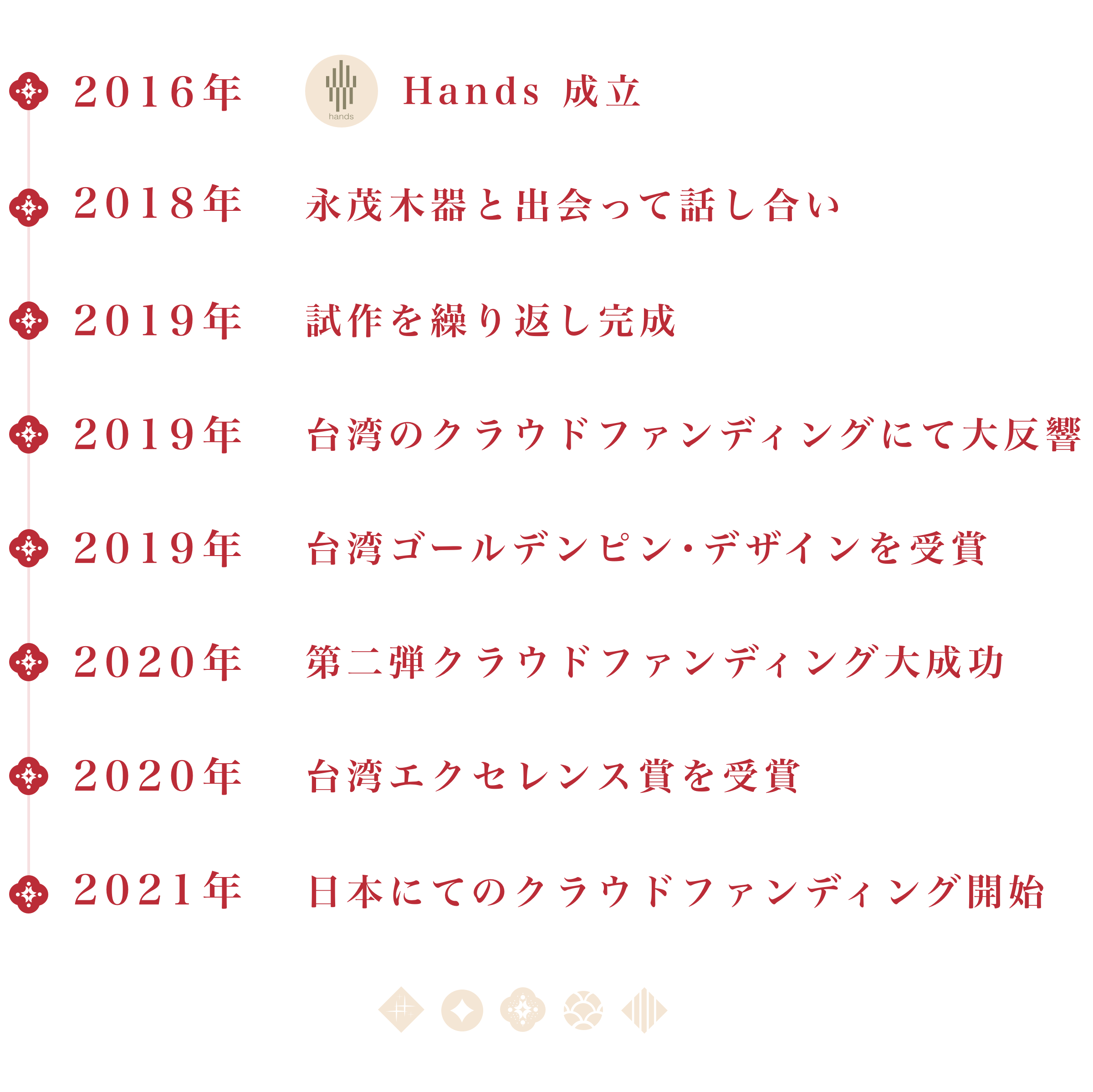 台湾は歴史的建築、民族文化、工芸技術、伝統産業生活の美学など、現在多くの貴重な文化が失われつつあります。「Hands」は伝統工芸の価値を大切にし、新たな価値を創造することを提唱しております。