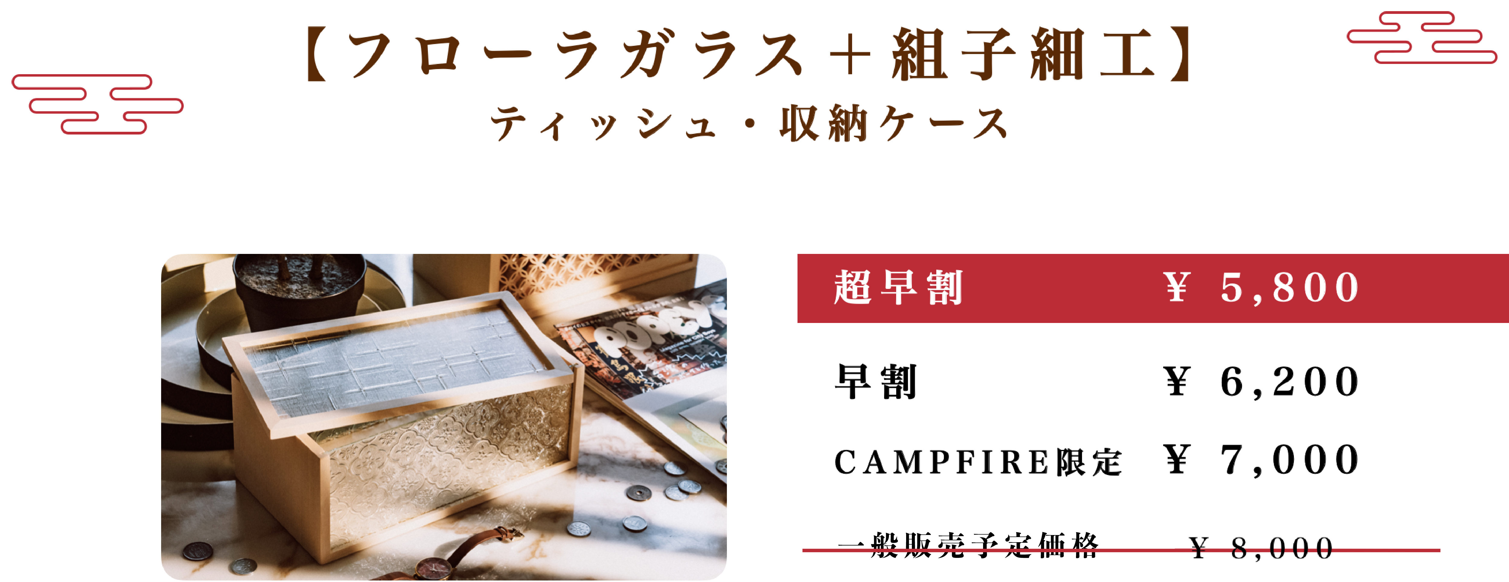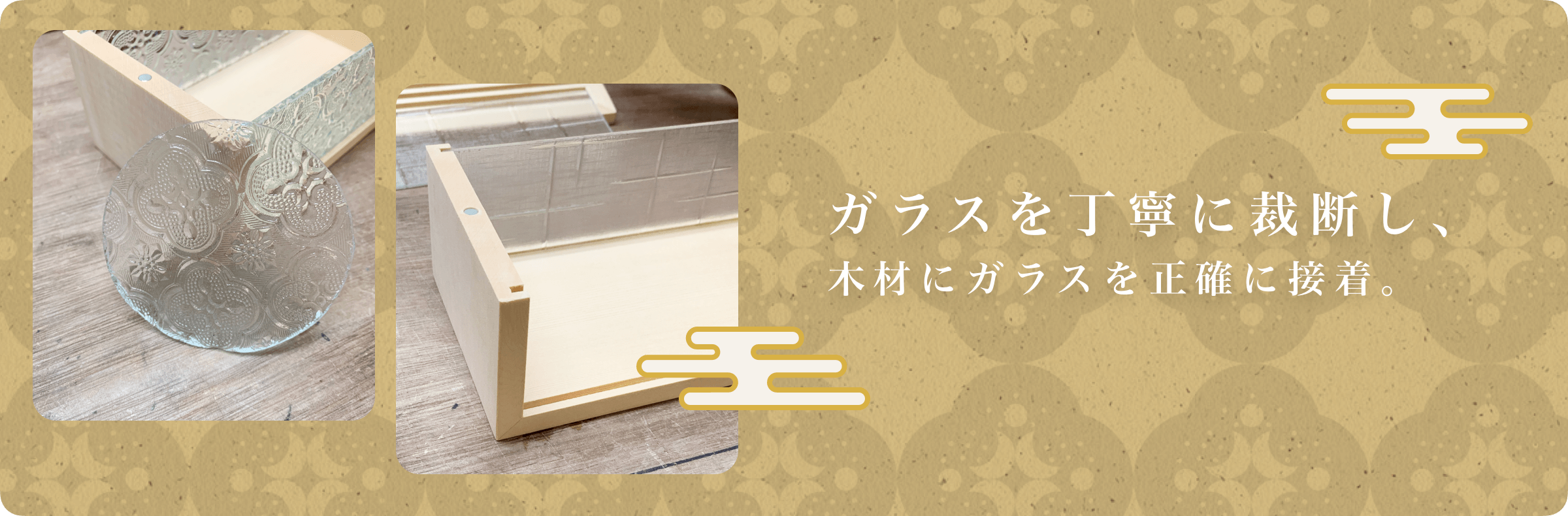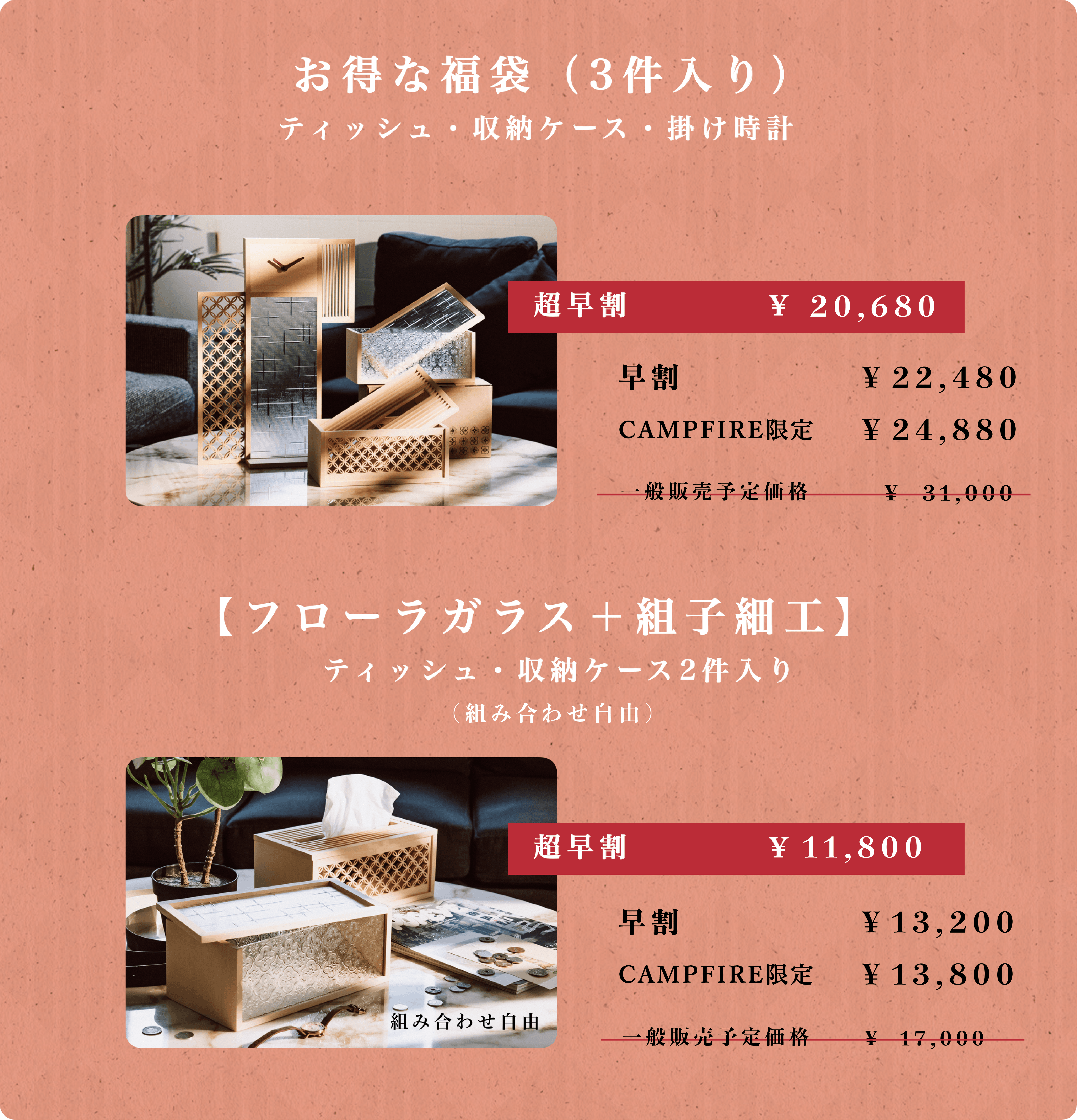 ①「フローラガラス」と「組子細工」が施されたティッシュケース: