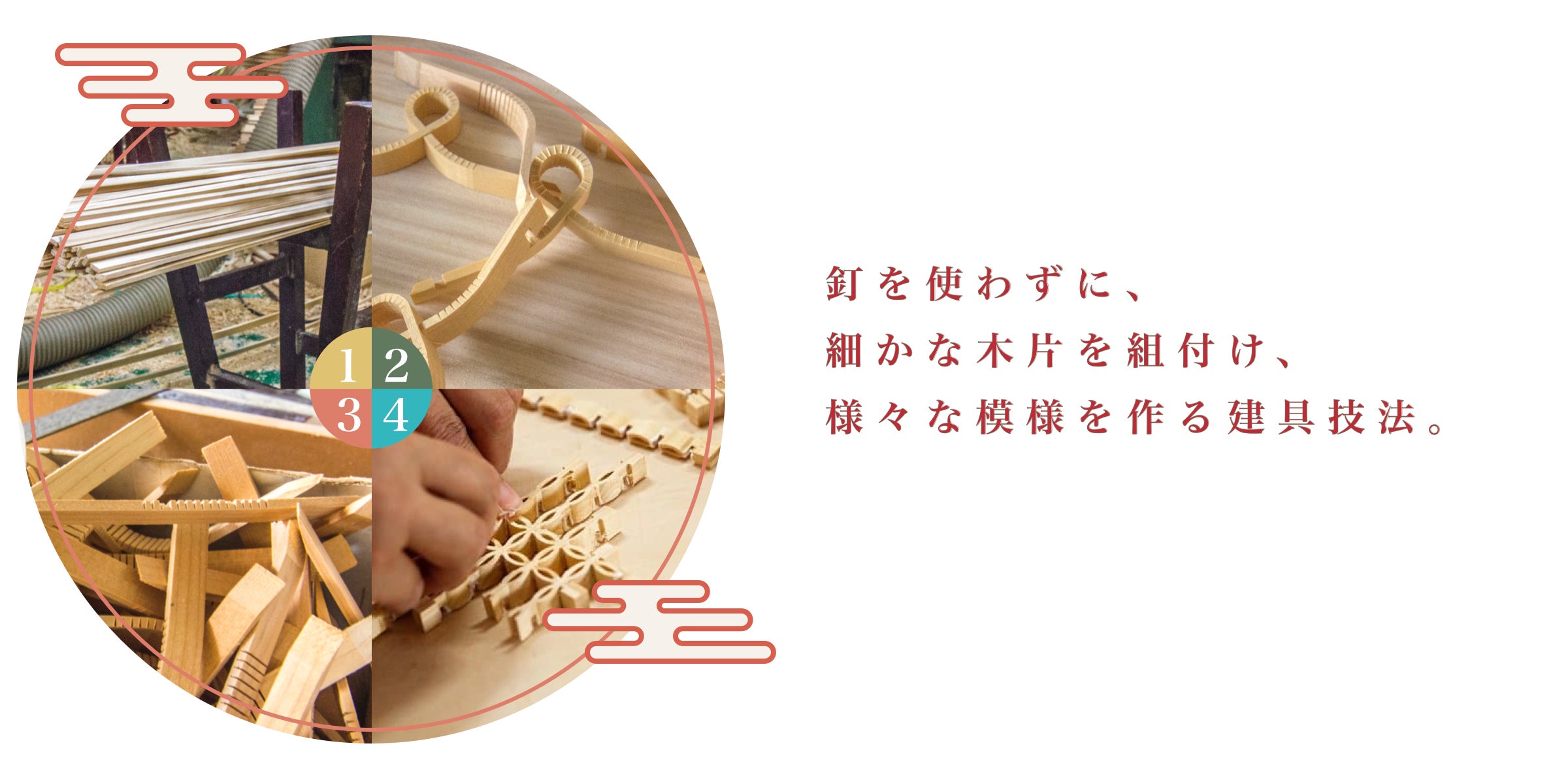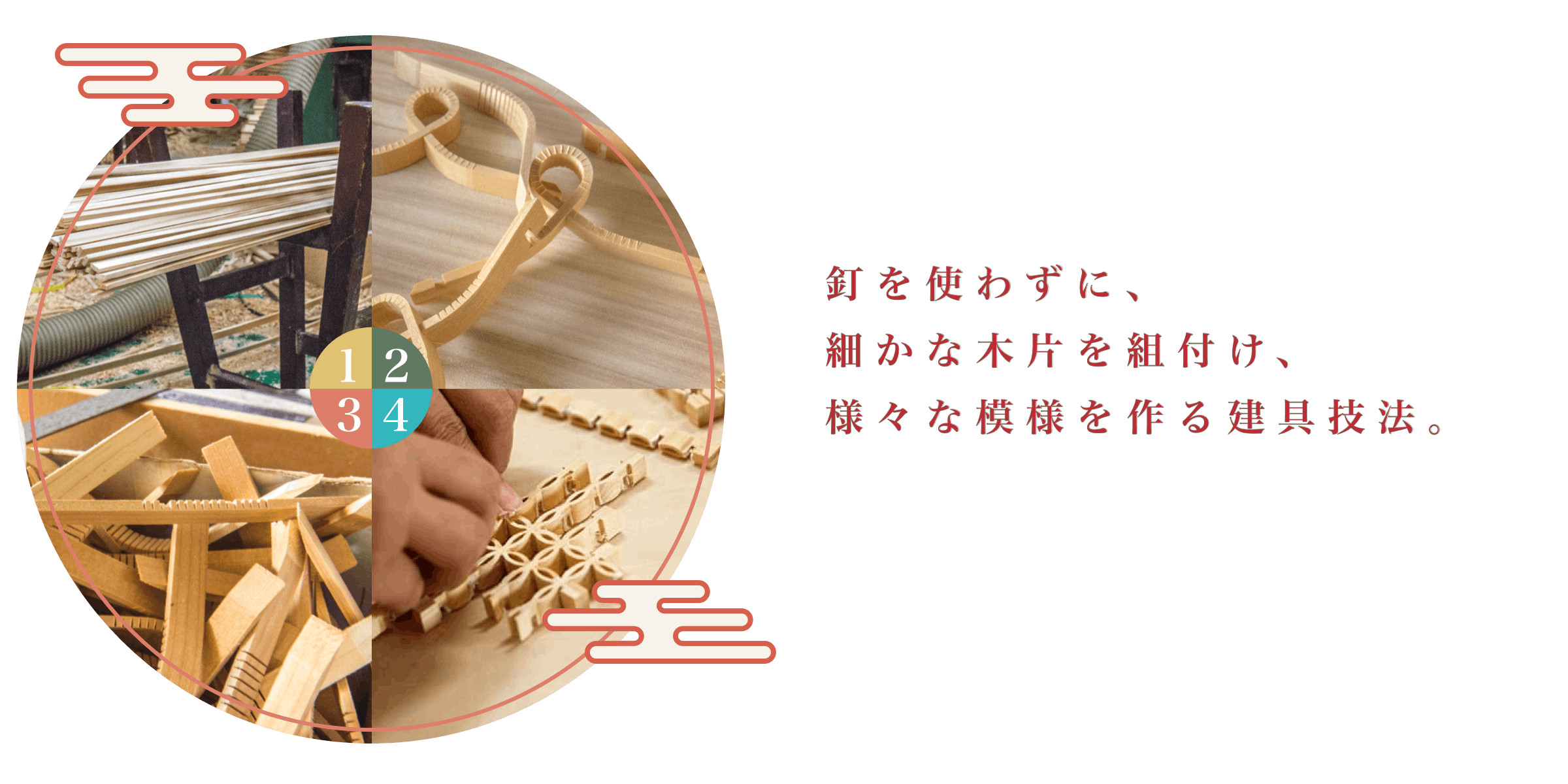 「組子」とは、細い木片を釘を使わずに組み合わせ、緻密な幾何学的紋様を生み出す木工の伝統技法のこと。和室の欄間(らんま)や障子部分などに用いられています。和室の減少とともに組子の技術は貴重とされ、伝統工芸として台湾に根付いている職人の精神が見事に表現されています。