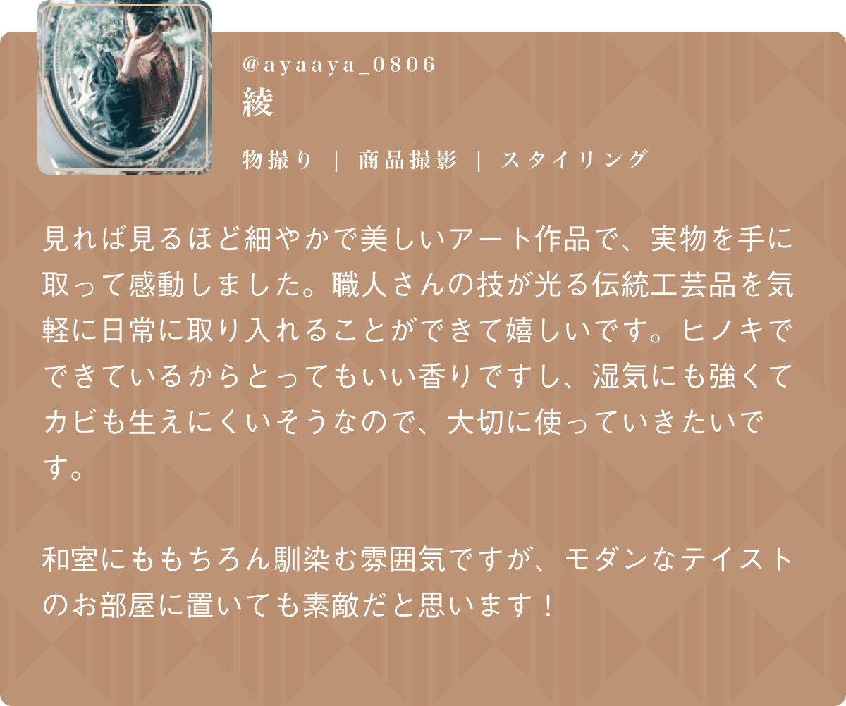 組子産業は盛況時からは衰退し、多くのメーカーが転換または終了を選択した一方、「永茂木器」は工芸に対する情熱を持ち続け「組子産業」を牽引。現代の中で新しい価値を探し求め続け、今回の作品「台湾レトロ新提案シリーズ」にも参加してくださいました。