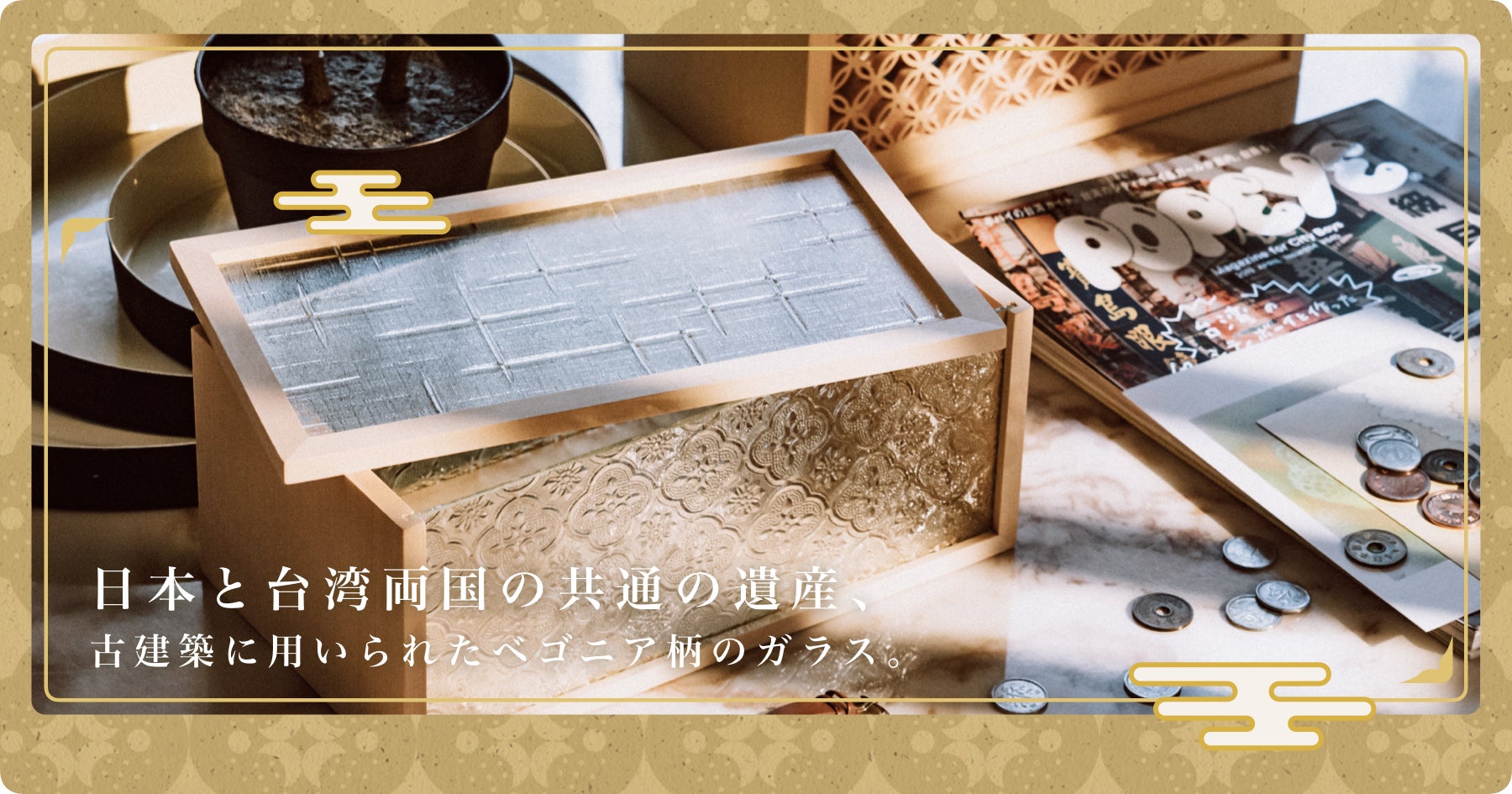 明治時代以降、1945年(昭和20年)まで続いた時代に、台湾で建てられた建物には「フローラガラス」や「組子細工」といった伝統的な技術が施されていました。住宅事情の変化に伴い、現在では入手困難。ただこの技術は日本と台湾両国の共通の遺産となり現代にも残っています。数少なくなってしまった職人の技術を継承していくため、台湾にて日用品として蘇らせる活動が立ち上がりました。