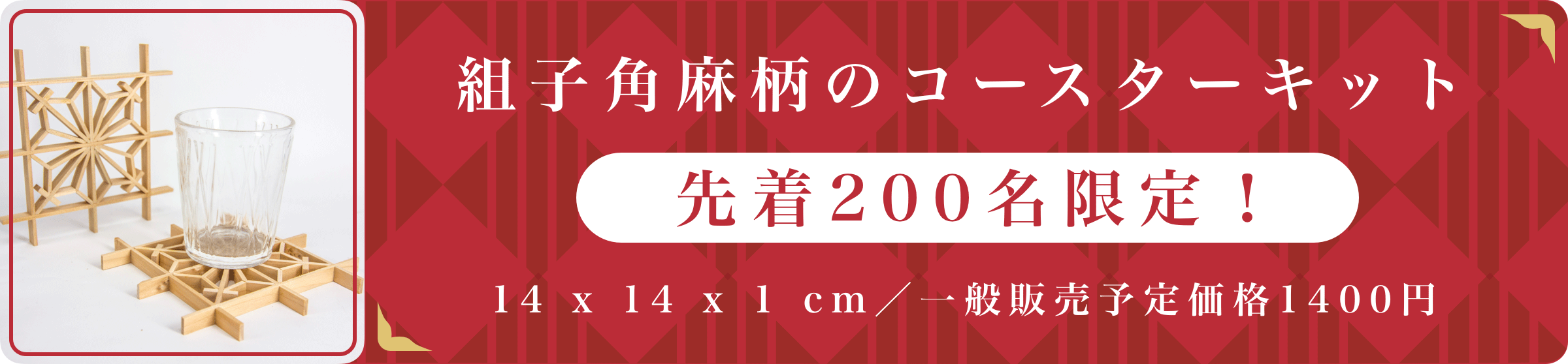 先着200名の支援者に組子角麻柄のコースターキットをプレゼント!(※支援につき一つをプレゼント)