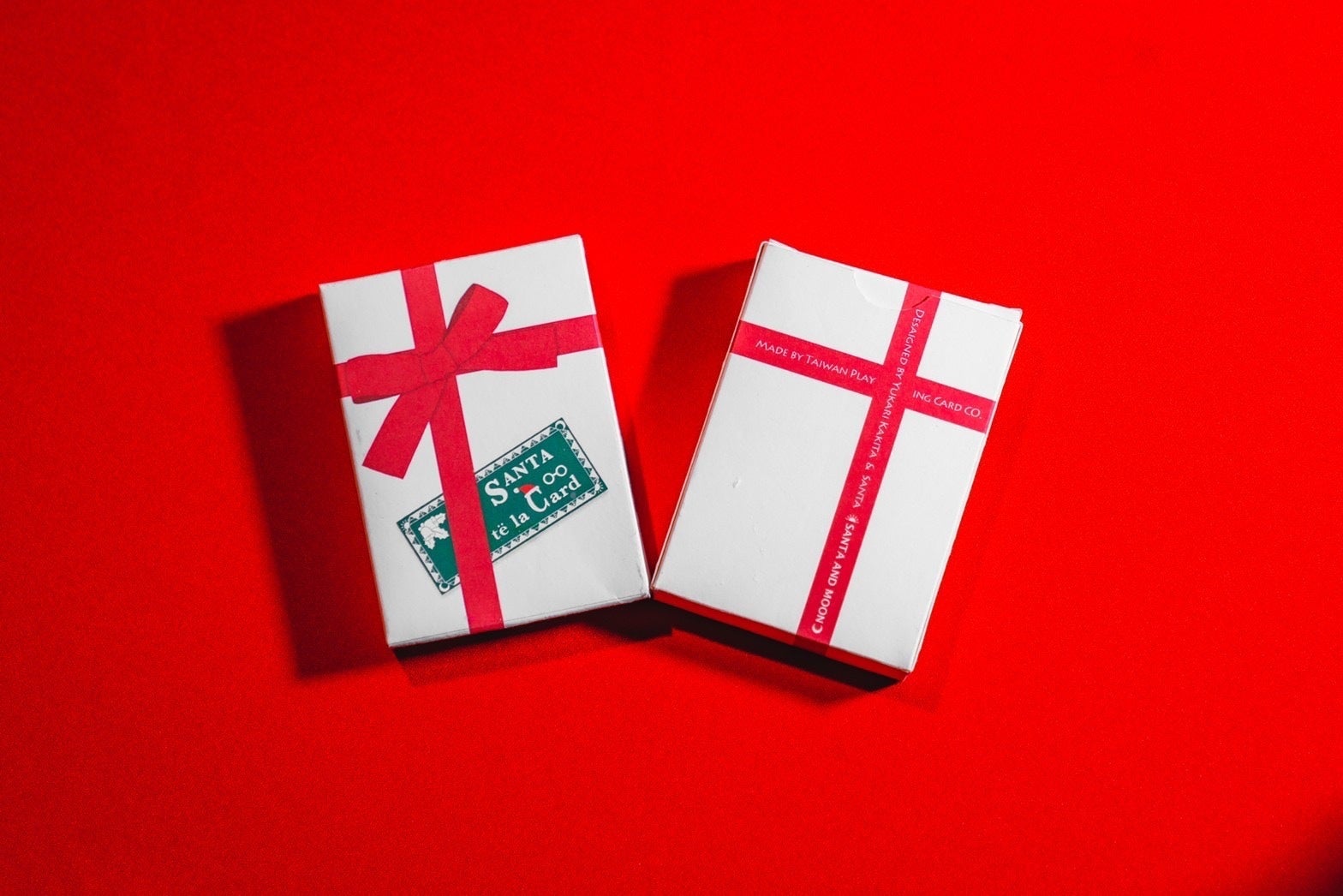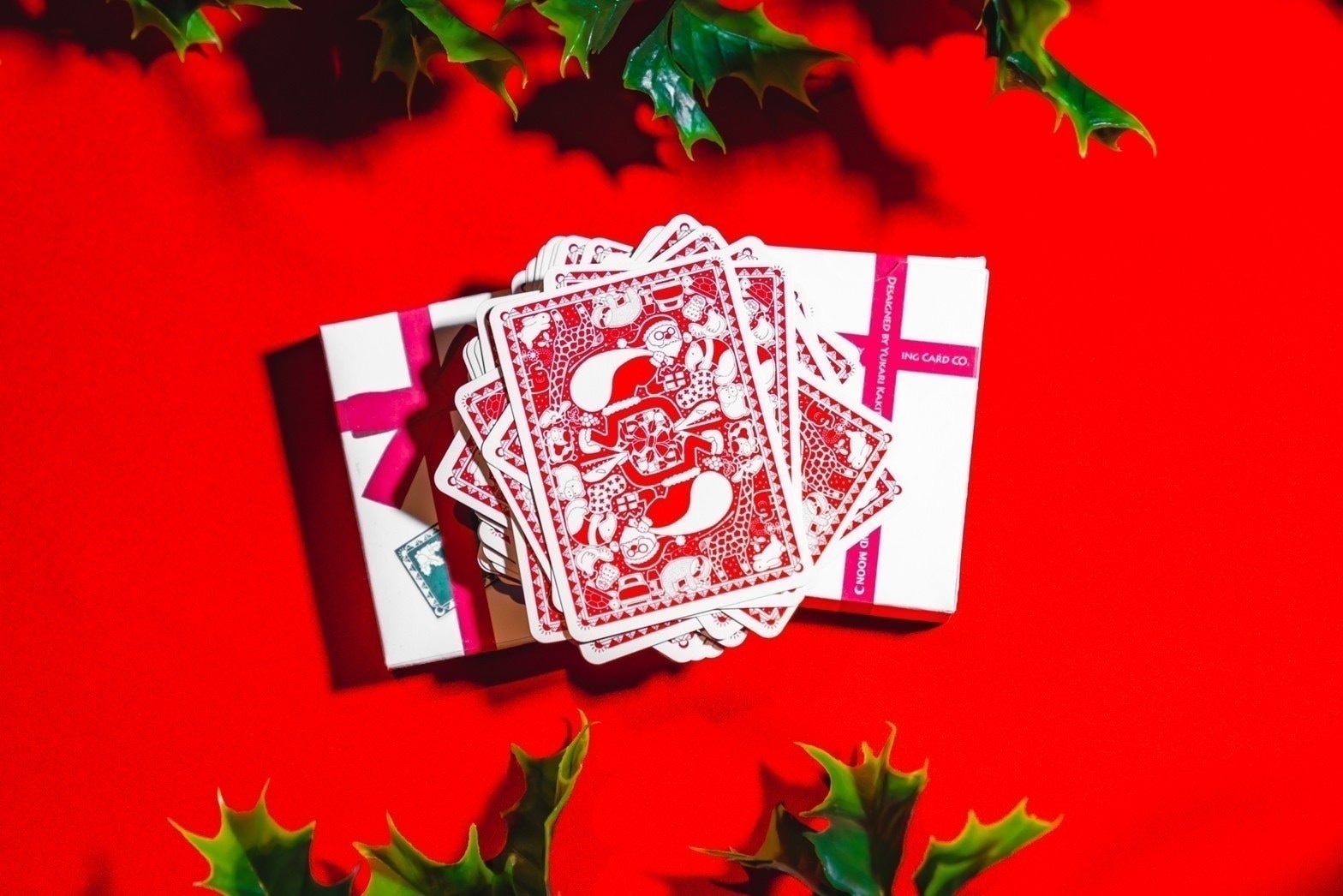 プレゼントボックスに見えるよう何度もデザインを練り直し、ようやく理想のフォルムが完成。余白をたくさん残し、見た目の美しさを意識したデザインになっています。これだけだと中身のトランプのデザインがわからない…?プレゼントは開けるまで中身がわからないからプレゼントなのです。