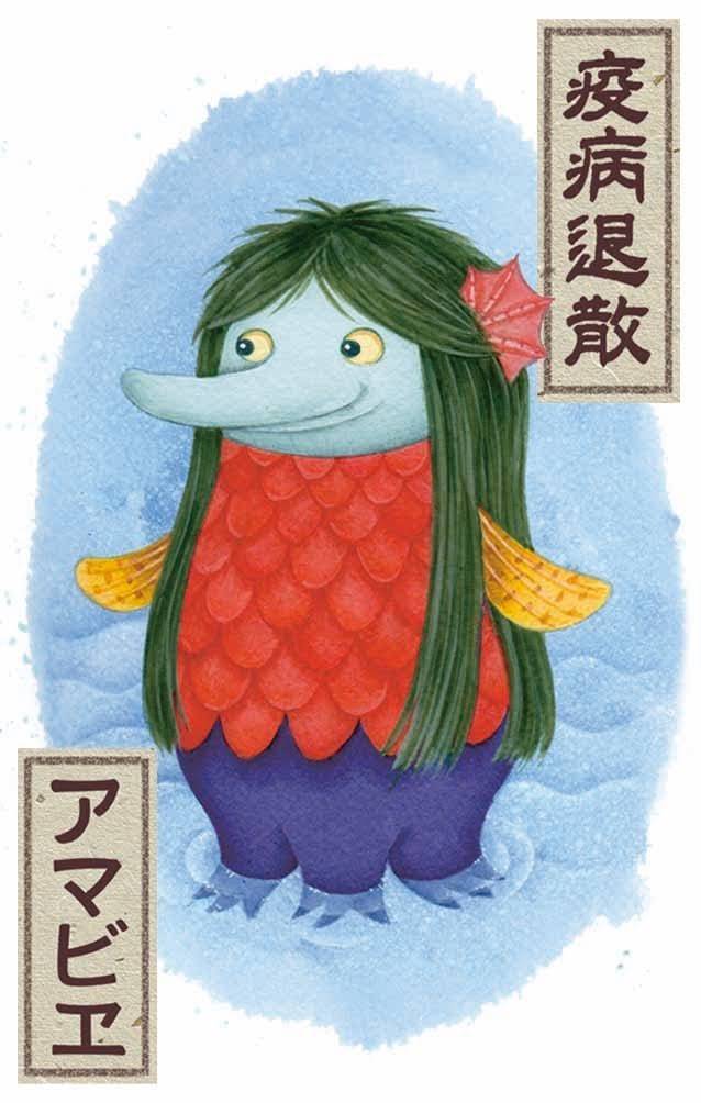 ご支援いただいた方々全員に本デックのデザインを担当したイラストレーター、柿田ゆかりによる新型ウイルス終息を願った作品、「アマビヱ」カードを付属します。