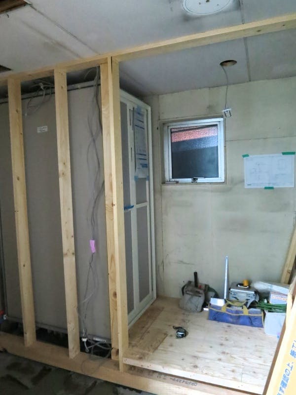 昨日、組み込まれたシャワー室の隣に壁の基礎が立てられ、脱衣室の床も作られました。
