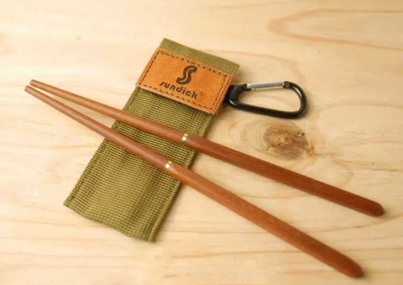 お箸入れはギターのストラップ部分の素材を使用して作られており、カラビナがついていることでバックやボトムスなど様々な部分に身に付けることができるようになっています。