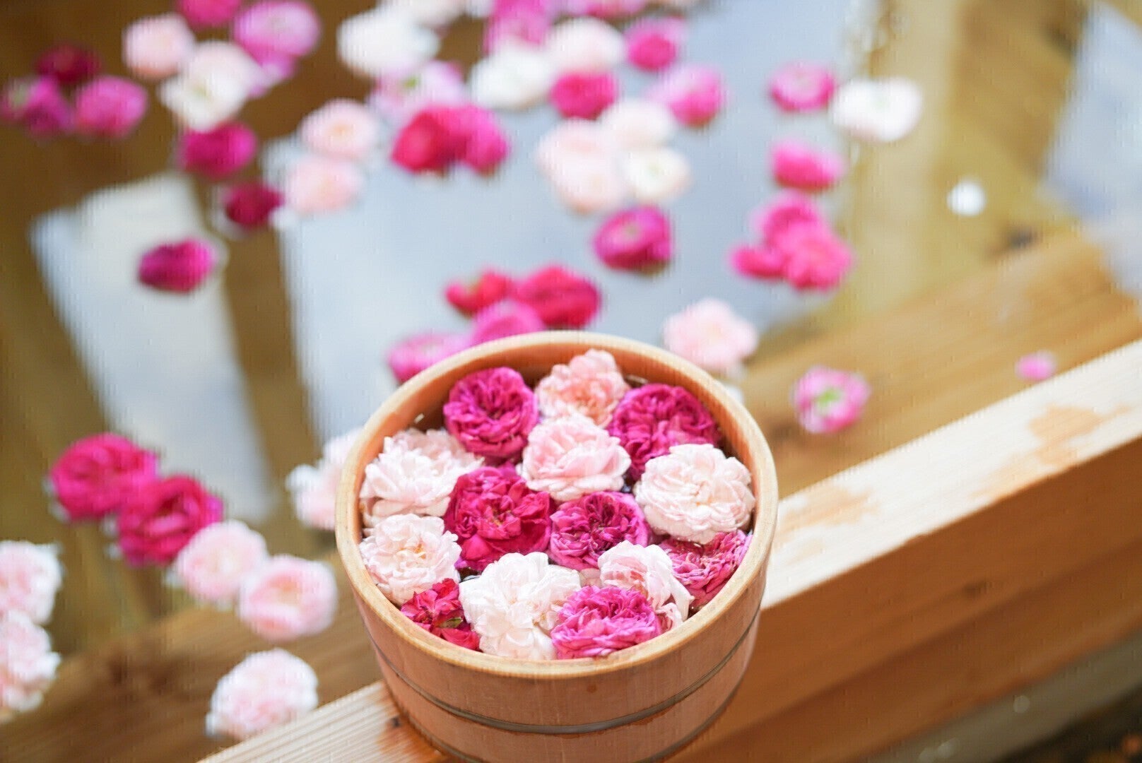 こちらの画像は2020年に実施したバラモリツアーのバラ風呂の様子です