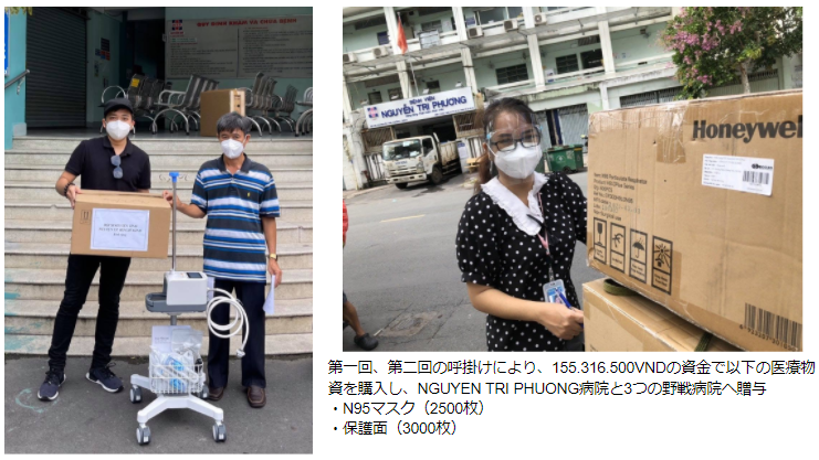 集められた支援金は、PL&G に送金し、現地でPL&Gは病院の人工呼吸器のサプライヤーから直接購入した後、NGUYEN TRI PHUONG病院へ贈与してもらります。