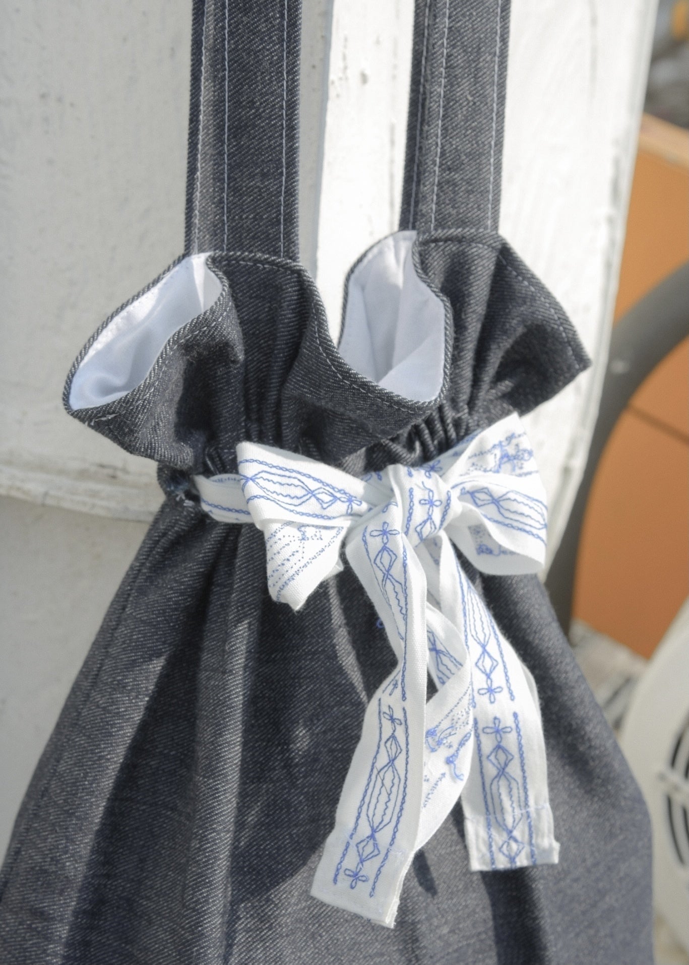 生地は岡山にあるデニム織布製造業の篠原テキスタイルさんからいただいた残布を使って作っています。織りあがった布を検品する際にキズなどが見つかった布です。制作の際はキズなどを避けて生地をカットしています。本編映像で使われる衣装や舞台美術にも残布、残糸を使って制作しています。残布、残糸の情報はSNSでも紹介していきますので、よかったらチェックしてください!