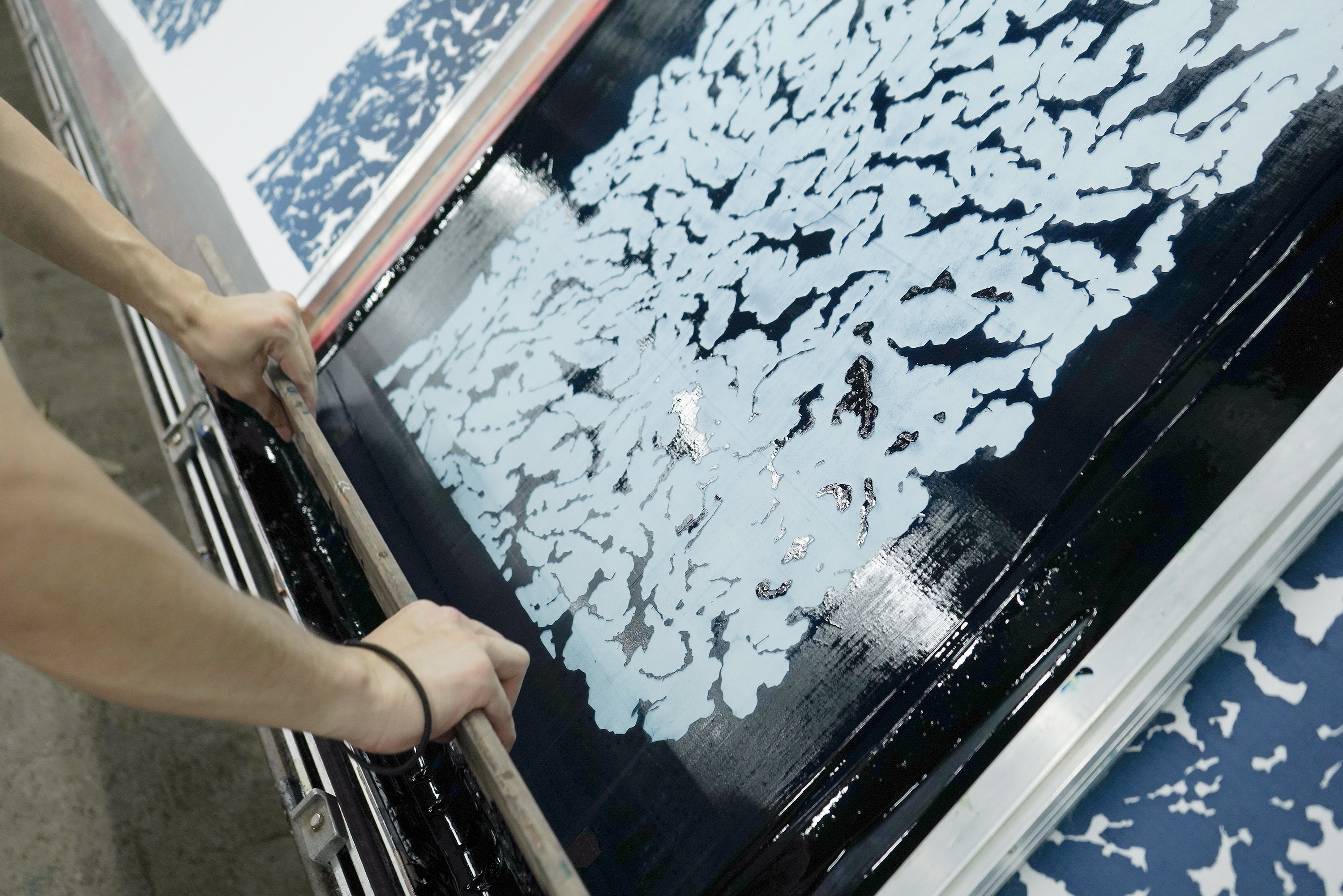 学生で制作したグラフィックロゴがプリントされています。製版からプリントまで自分たちで作業を行なっています。