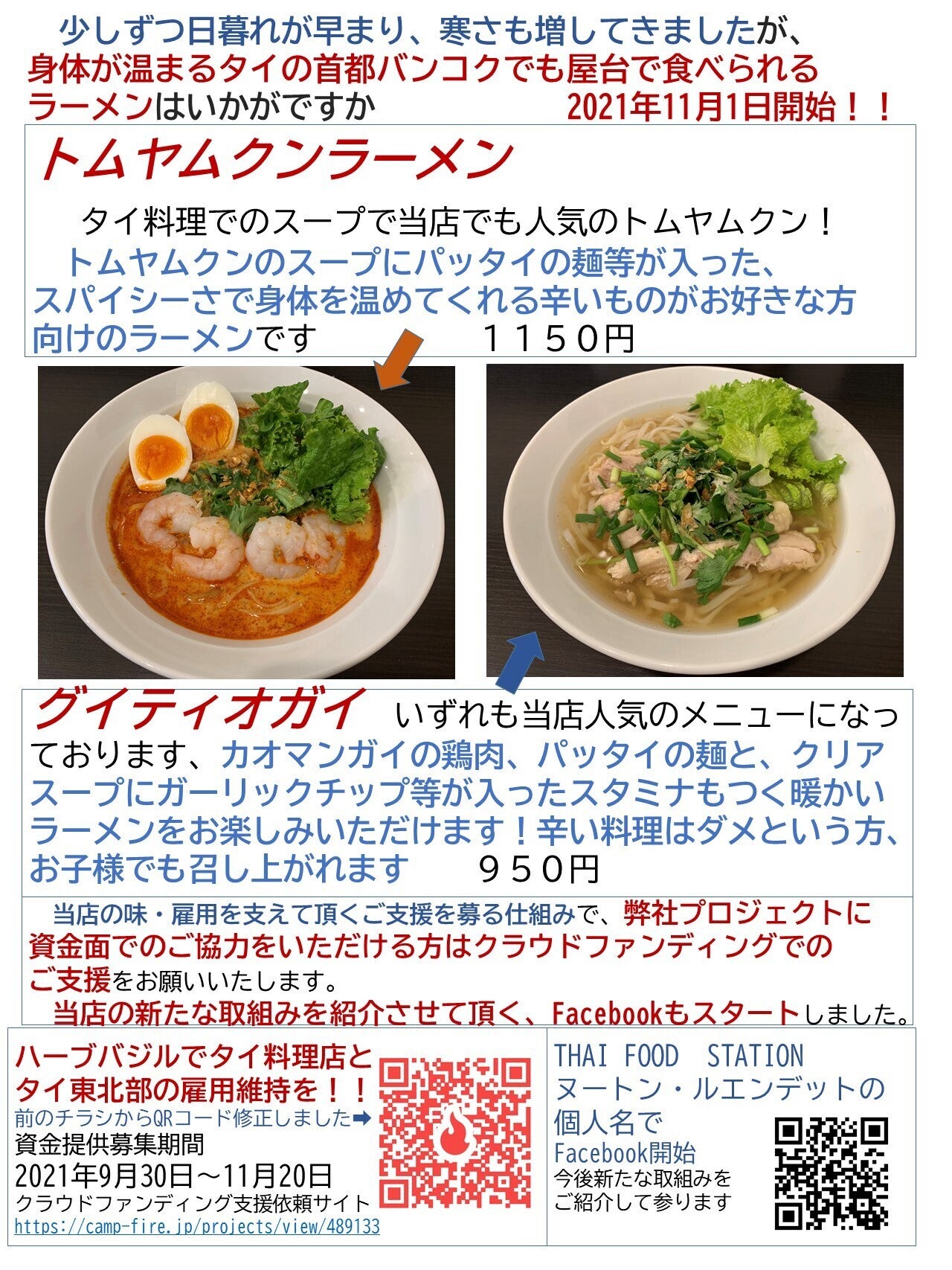 THAI FOOD STATION白金店(バーサイアム株式会社)のヌートン・ルエンデットです。 日ごろから店頭でも皆様からお声がけ、店舗運営の応援をいただくだけでも大変にありがたいことですが、「ハーブバジルでタイ料理店とタイ東北部の雇用維持を!!」https://camp-fire.jp/projects/view/489133?list=prefecture_tokyo_food_last_spurt でご支援をいただいた方がおかげさまで20名様になりました。 残り期間が8日となりましたが、引き続き頑張ってまいりますので、今後ともご支援のほどよろしくお願いいたします!THAI FOOD STATION白金店(バーサイアム株式会社) 代表取締役ヌートン・ルエンデット、スタッフ一同https://nutongproject.wixsite.com/my-sitehttps://www.facebook.com/nutongr