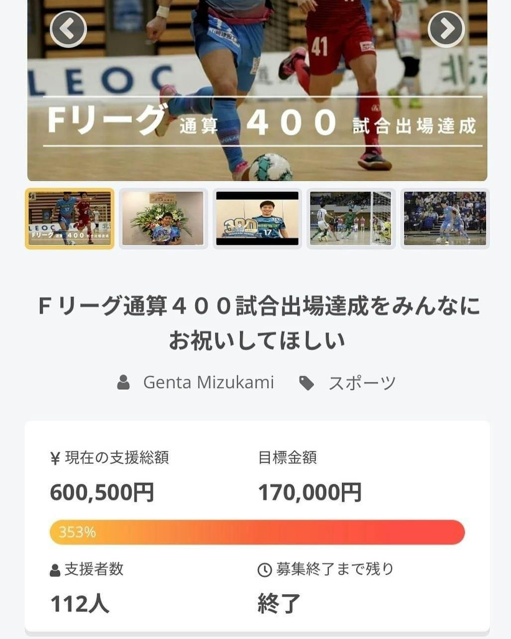 先ほど、クラファンが終了しましたので、その結果についてご報告させていただきます。
