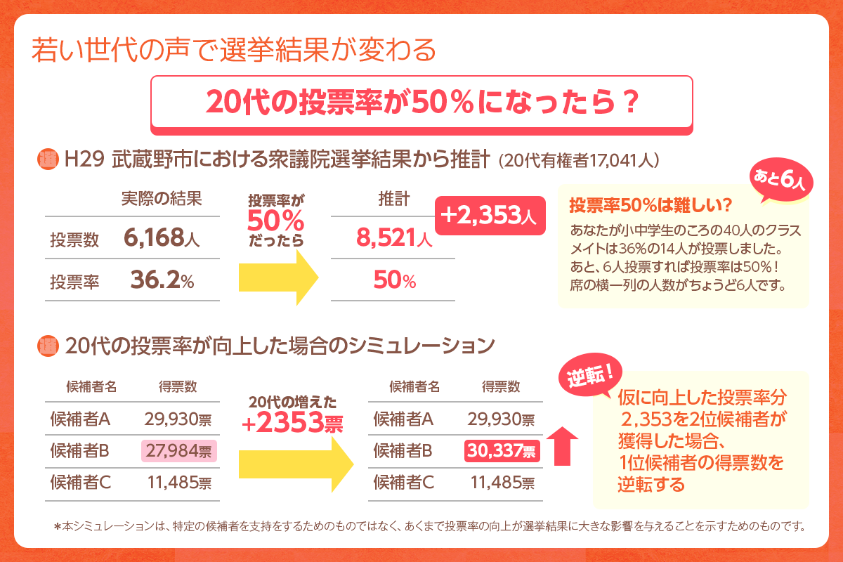仮に36.2%の投票率だった20代の投票率が50%だったとします。
