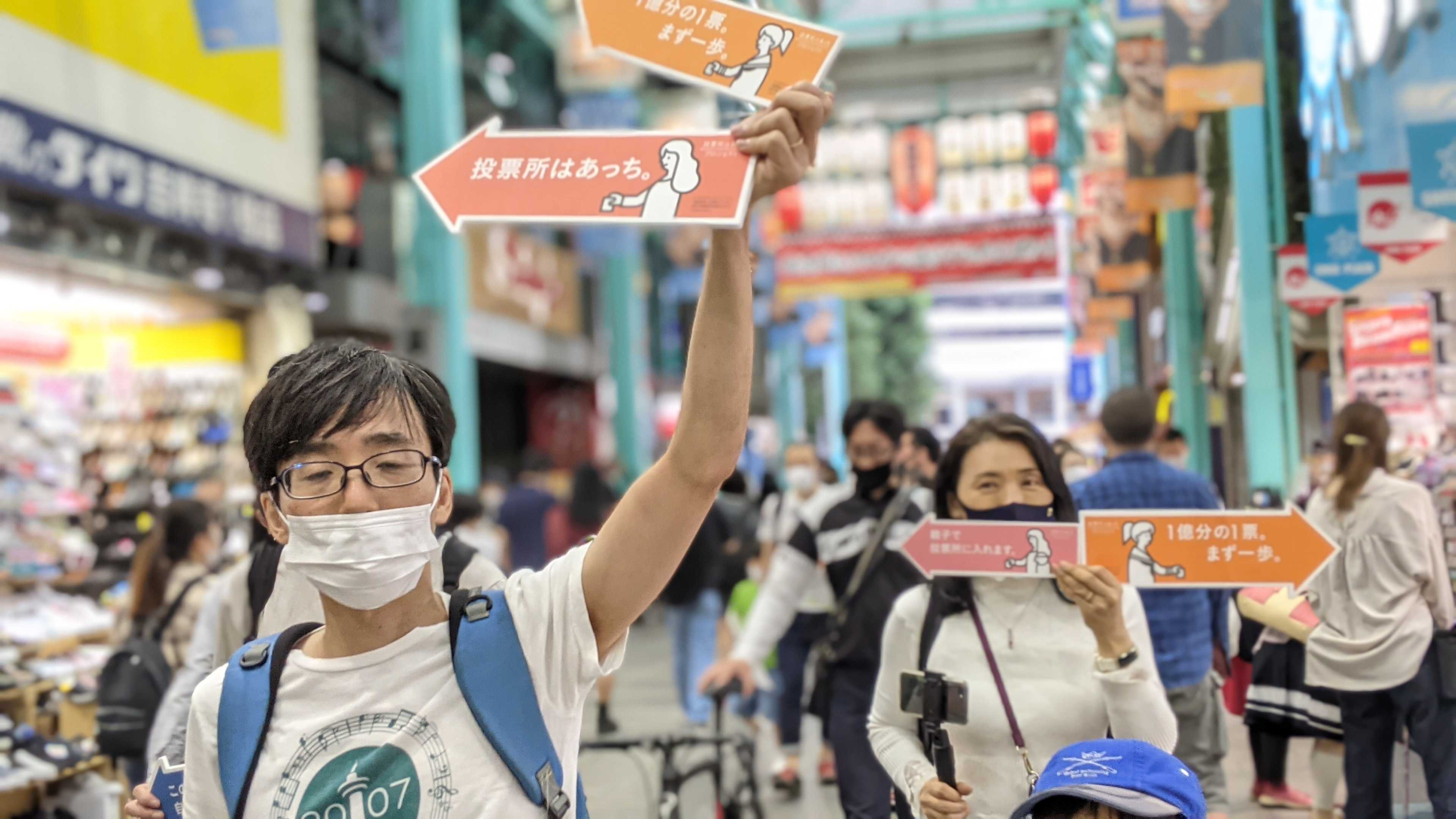 2021/09/27 13:34投票所はあっちプロジェクトを選挙告示日の9/26に行いました!当日は参加できるメンバーで集まり矢印をつくって井の頭公園を半周くらい、そのまま吉祥寺のサンロードや中道商店街を回りました。今回はコロナ禍ということもあり、声かけなどはせず矢印を掲げながら歩くだけになりました。途中、Twitterを見てくださった方が声をかけてくれたり、すれ違う人たちも「選挙か~」とか「期日前投票とかあるね」とつぶやいていたりしました。一定の効果はあったはず!10/3も投票所はあっちプロジェクトを開催予定です。詳細がまとまりましたらまた連絡いたします。渋谷などで活動されている方が、投票所はあっちがどんな感じなのか見学をかねて参加してくださいました。こうした活動がどんどん広がるといいなと思います! もっと見る
