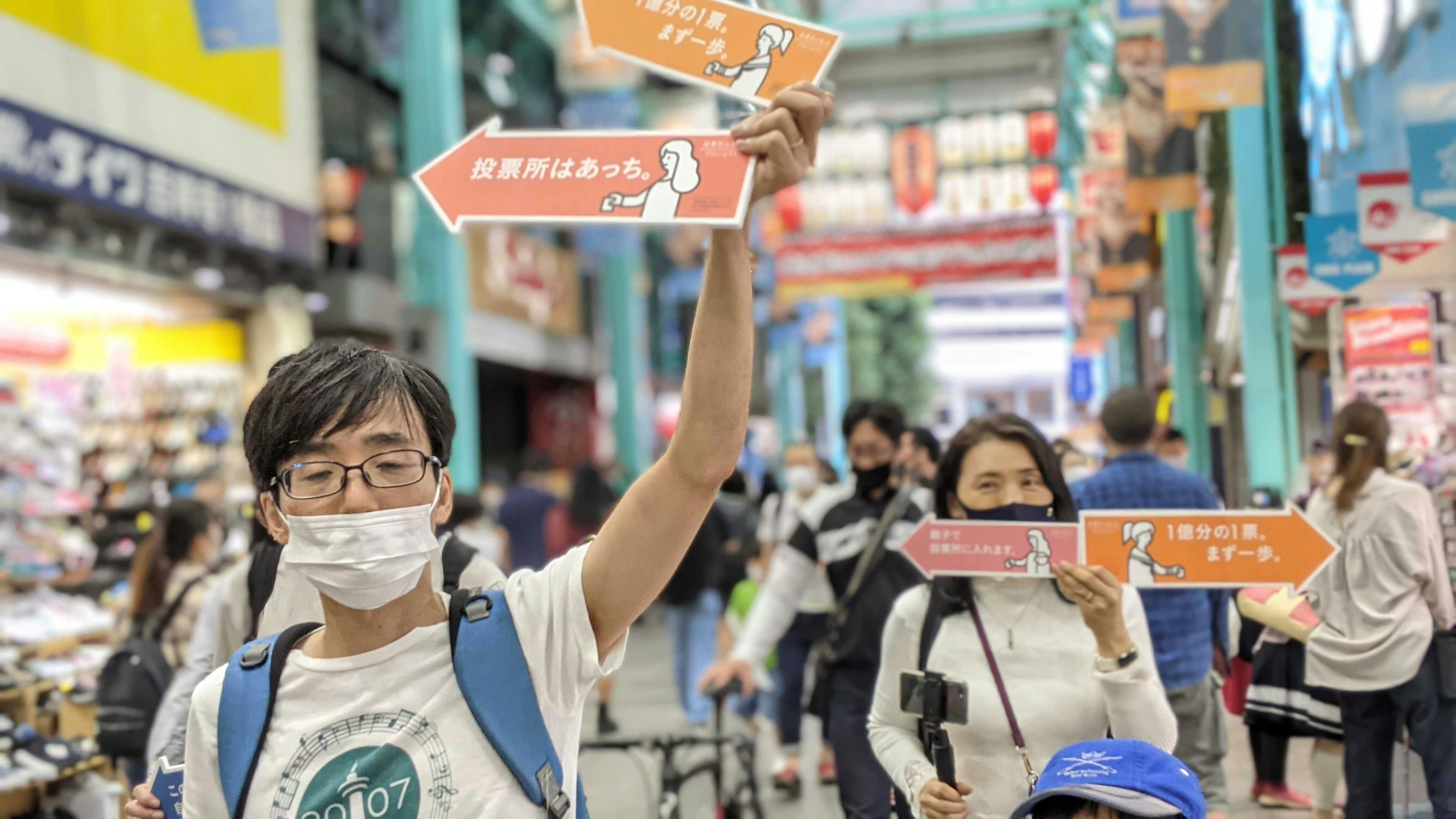 武蔵野市でも、「投票所はあっち→プロジェクト」「センキョ割」を実施する