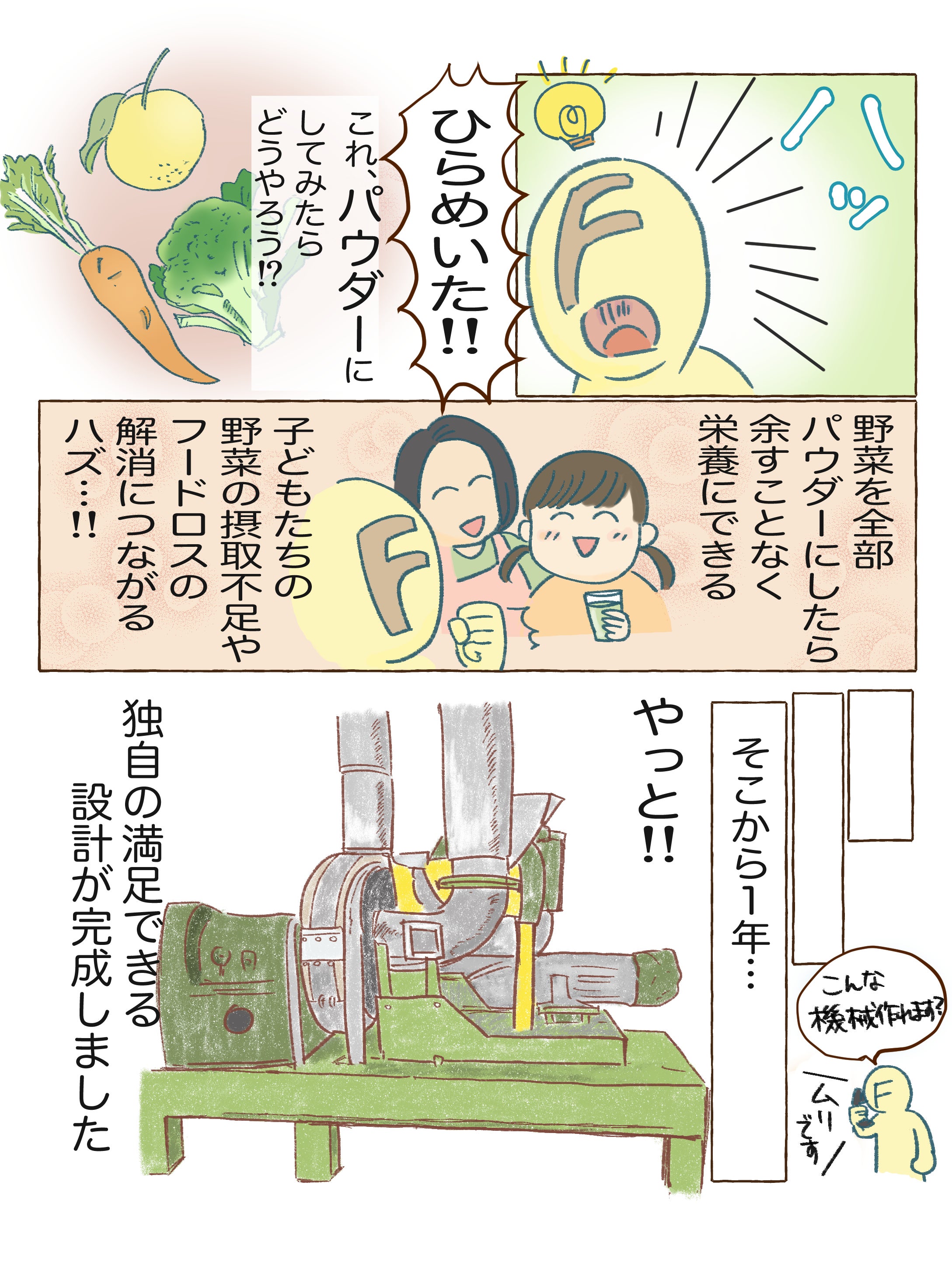 また人々の健康に役立つため、更なる事業展開「ベジタブルパウダー製造」を計画しました。