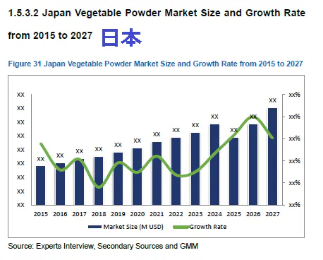 Global Market Monitorによる2015-2027年のグローバル野菜パウダー市場研究調査から、日本のみならず今後更に世界中で野菜パウダーの市場が大きくなると予測でき、強固で、持続可能なバランスのとれた経済成長が期待できる。