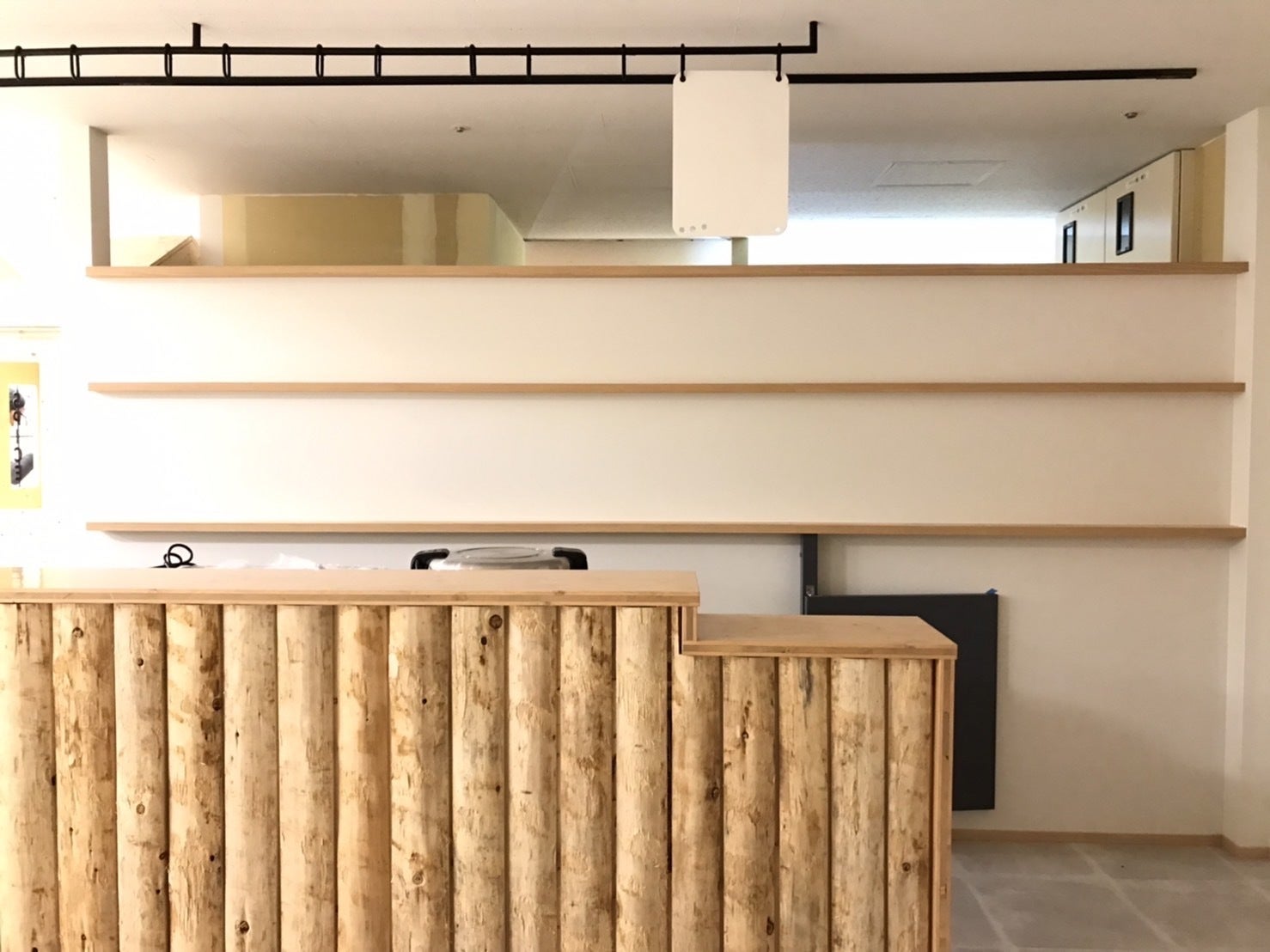 『ガッパ』とは丸太を製材する時に発生する廃材です。これをアップサイクルして、素敵なカウンターに産まれ変わりました!
