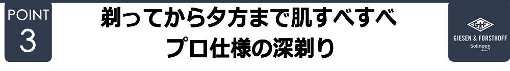 世界に名だたる刃物産地ドイツ・ゾーリンゲンの切れ味が、ヨーロッパのバーバーで剃ったようなプロ仕様の深剃りを実現します。