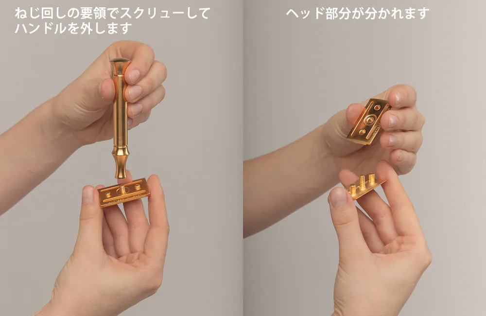 段違いの剃れ味を実現しつつ、T字カミソリに近い感覚で利用できるため、初めてダブルエッジレザー(両刃カミソリ)を使う方でも慣れやすく扱いやすいヘッドです。